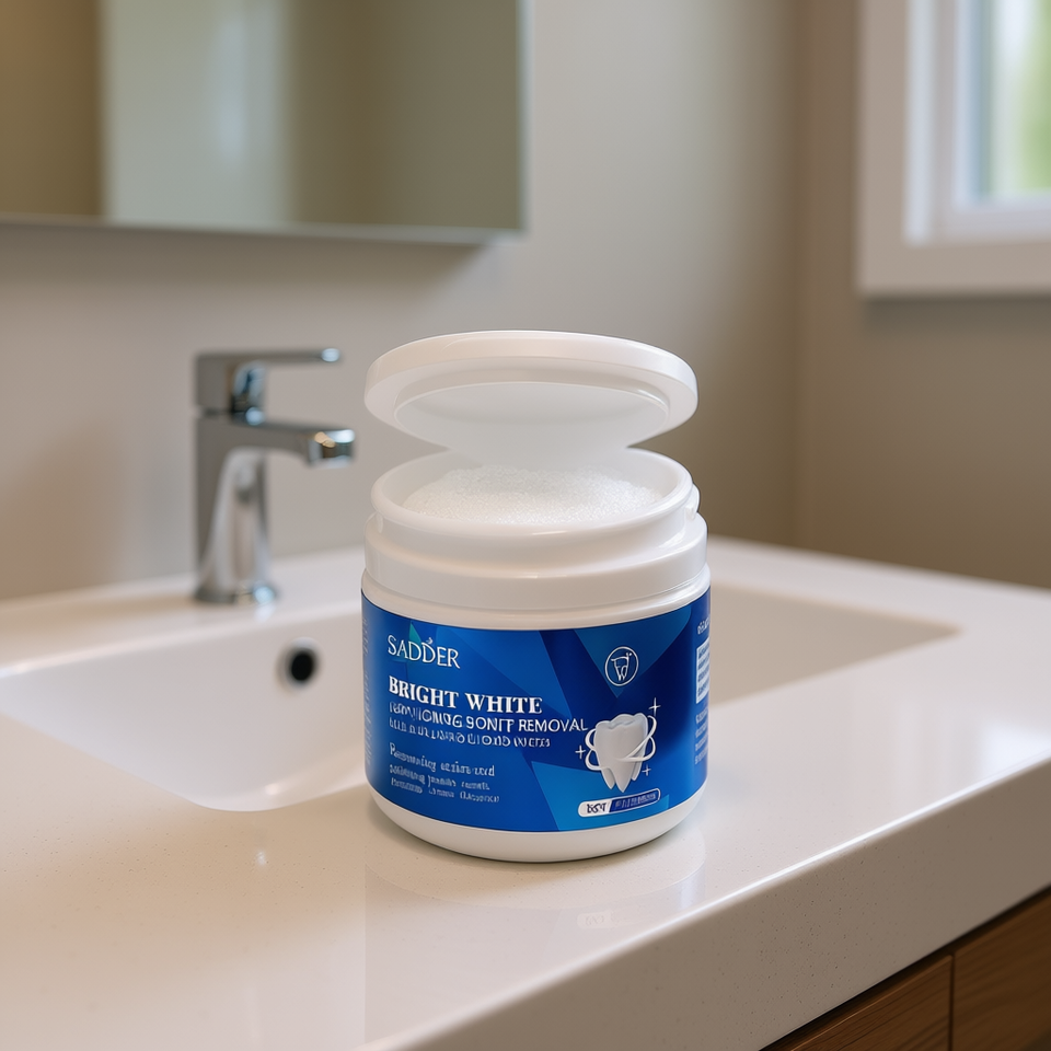 Polvere Sbiancante per Denti Sadder Bright White, Gusto Menta, Rimuove le Macchie, Perossido di Idrogeno, Uso Adulti, 144 Pezzi