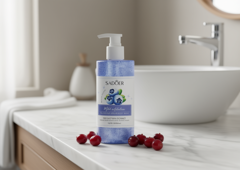 Sadoer Blueberry Body Scrub Liquid Exfoliator 16.9 Fl Oz Cranberry Scent For All Skin Types Adults