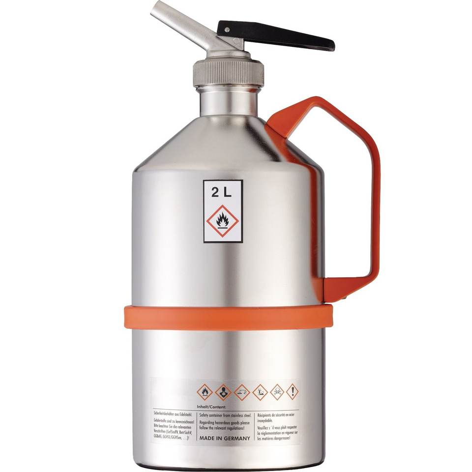 Safety cans made of stainless steel V4A – safe, leak-proof, and chemical-resistant dispensing can – Bürkle