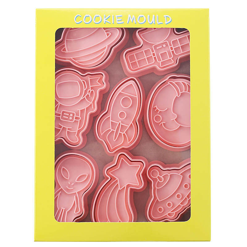 Scatola di colore per set di biscotti in plastica cartone animato tema spazio cutter stampo per goffratura