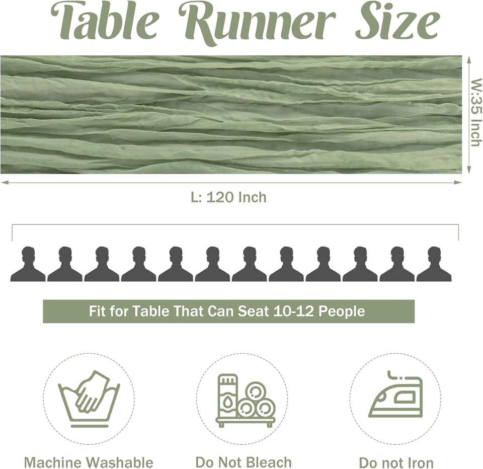 Sage Green Cheesecloth Table Runner 10Ft Rustic Gauze Table Runner 120 Inches Boho Tablecloth for Wedding Bridal