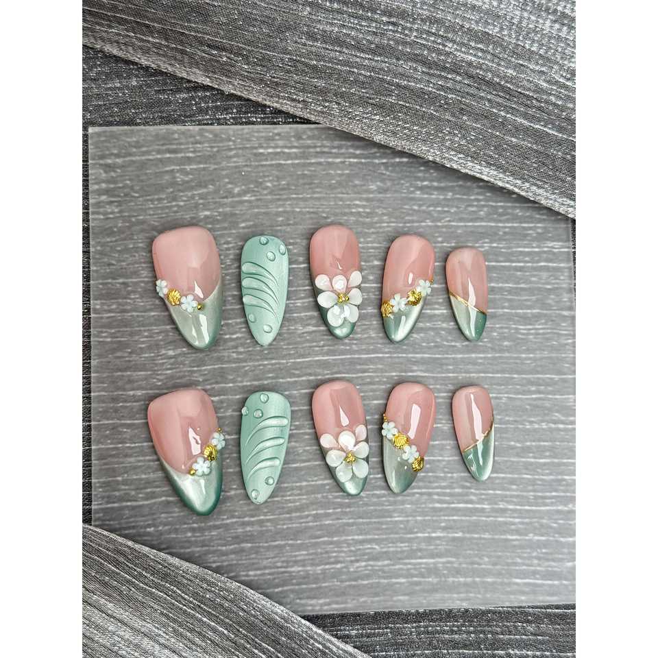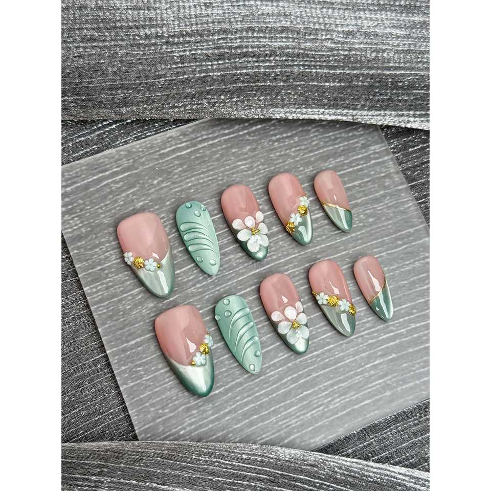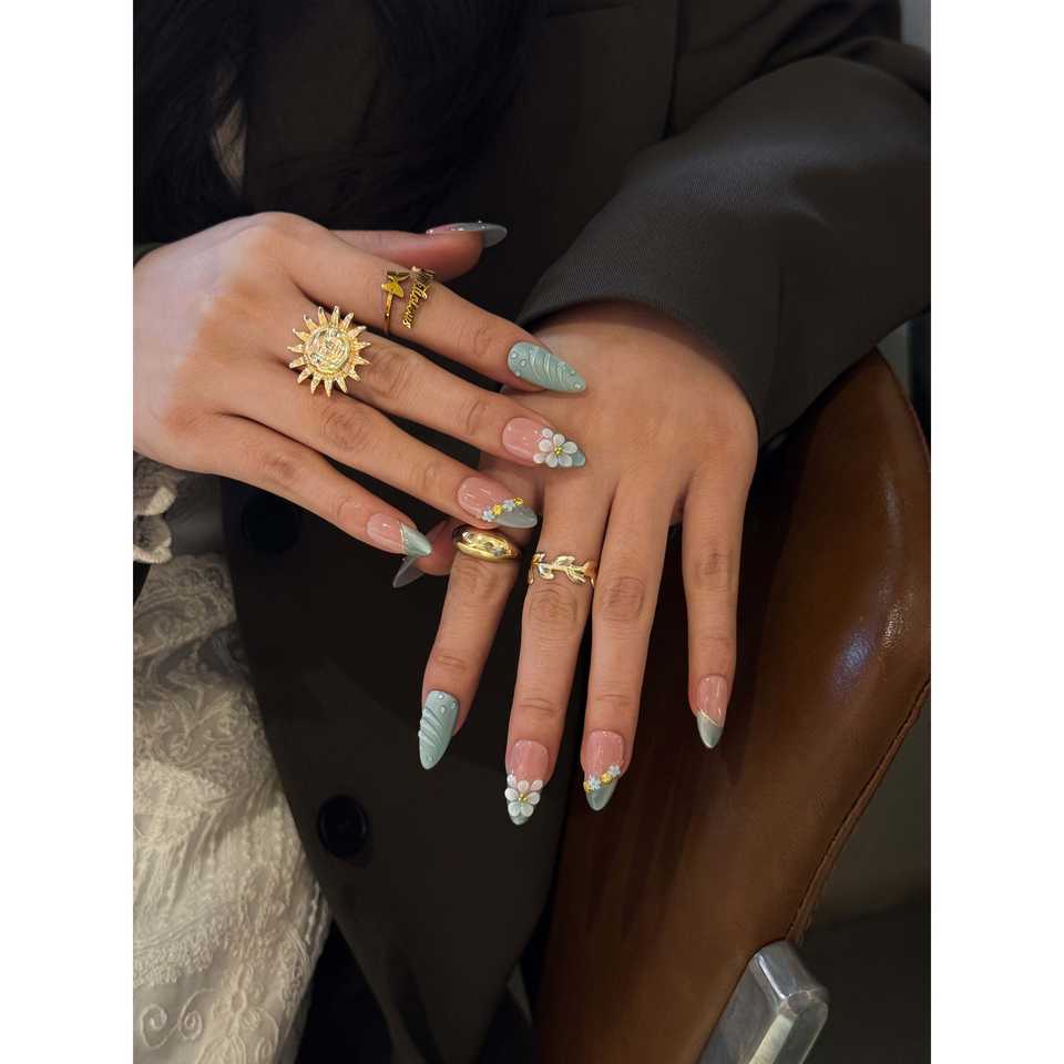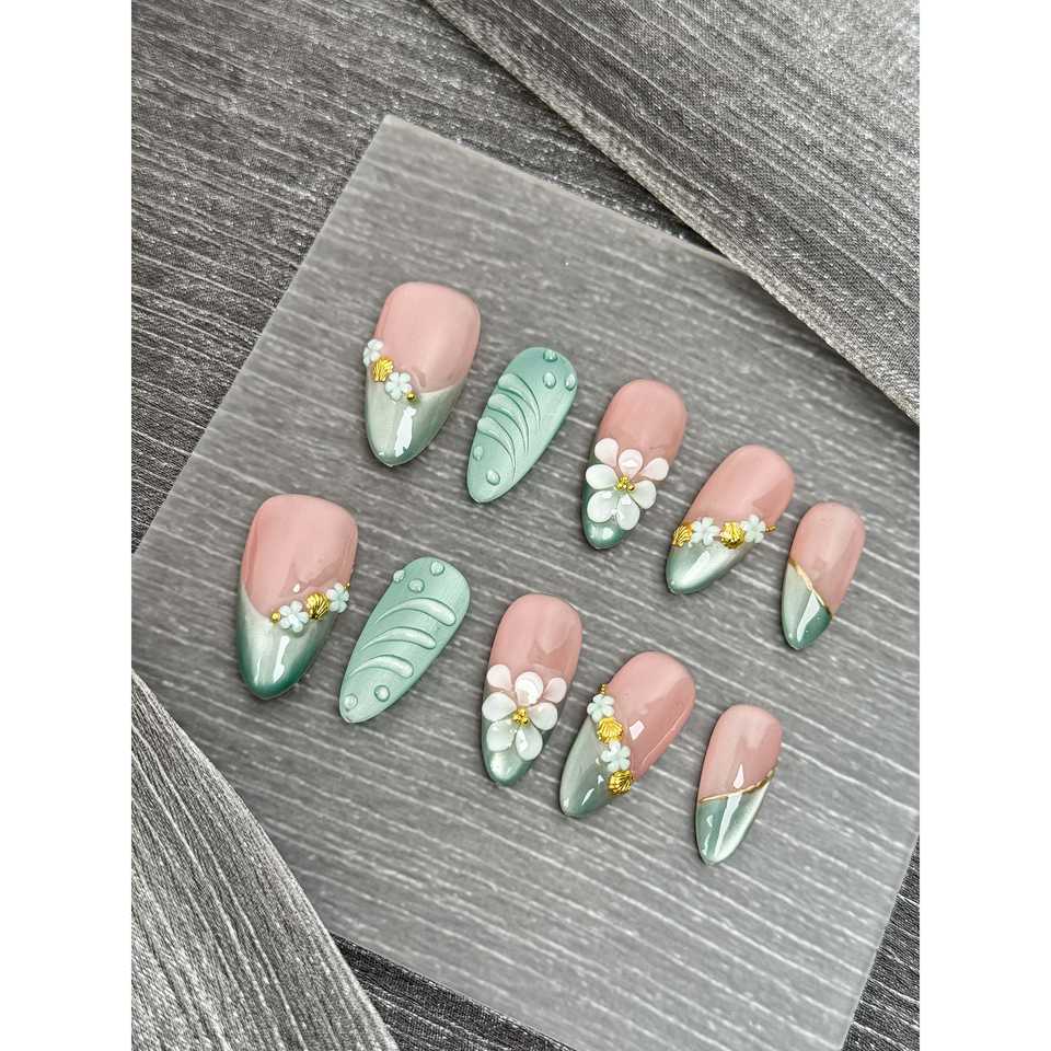 Sage Whisper Bloom Nail Art da applicare con la pressione