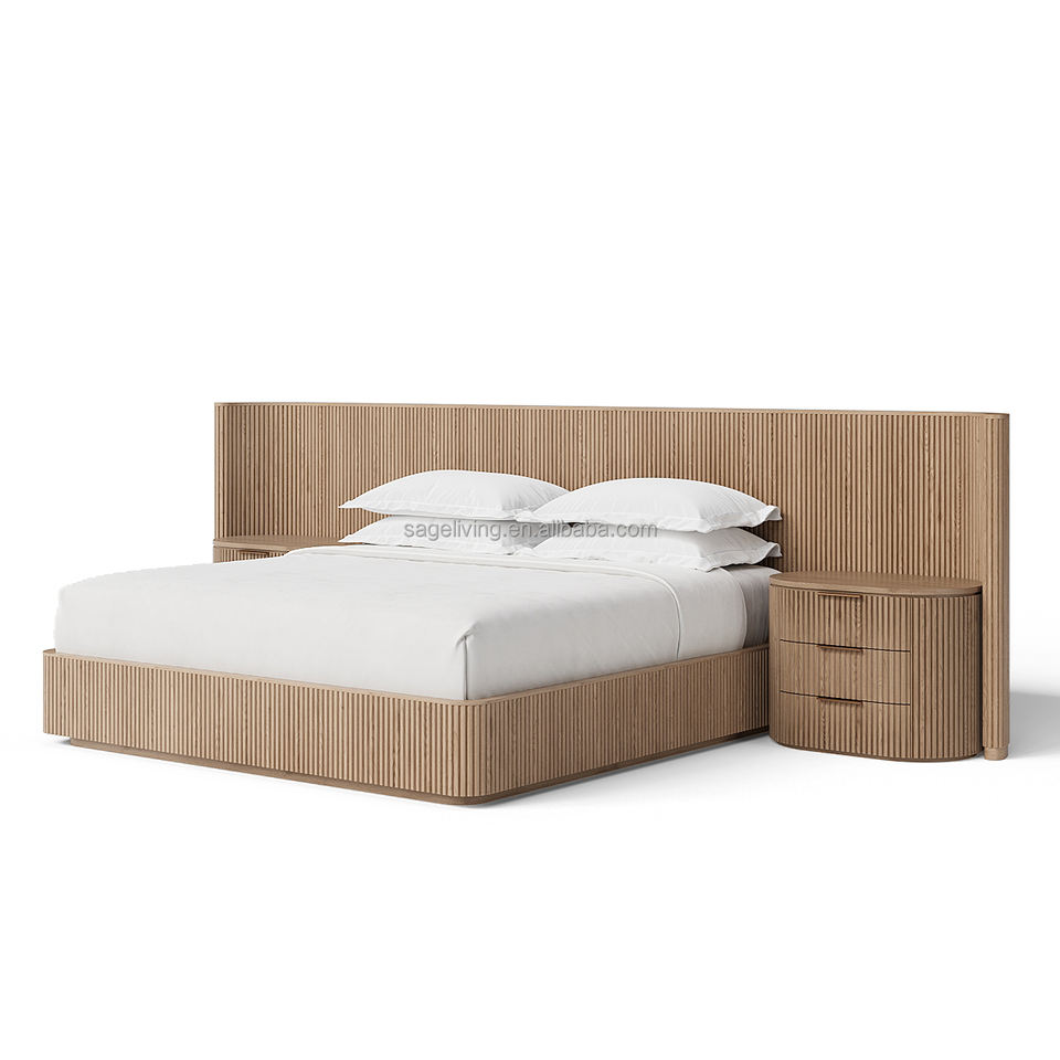 Sageliving Bedroom Furniture Customized Queen King Size Solid Wood Bed Extended Shelter Bed with Closed Nightstands