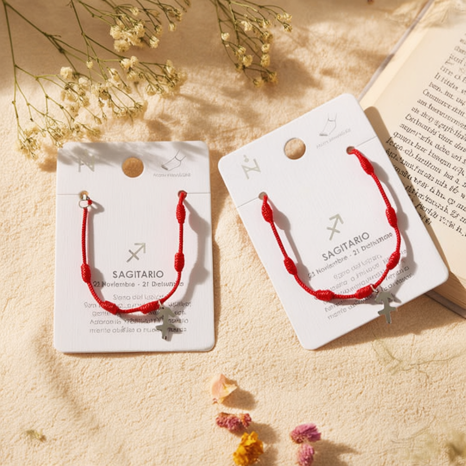 Cavigliera Sagittario Sette Stelle con Cordino Rosso Intrecciato Fatto a Mano in Acciaio Inossidabile, Gioiello Zodiacale per Donna, Cavigliere alla Moda
