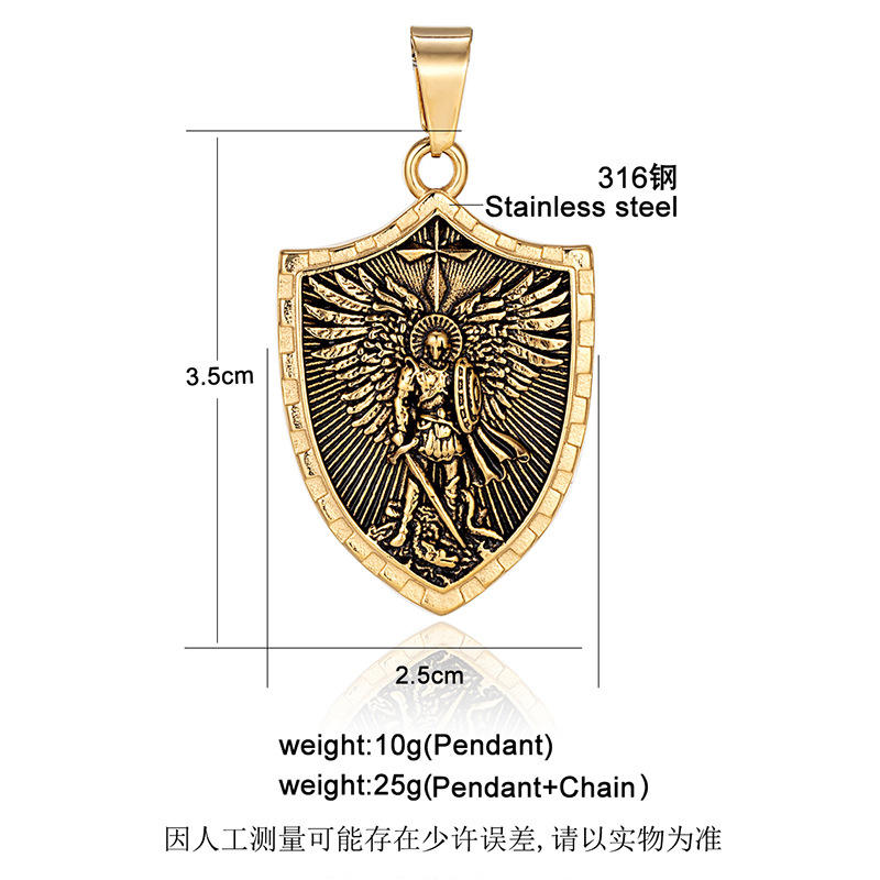 Saint Michael Archangel Sword Shield Trendy Anti Tarnish Waterproof Stainless Steel Pendant Fashion Jewelry Necklace Pvd for Men