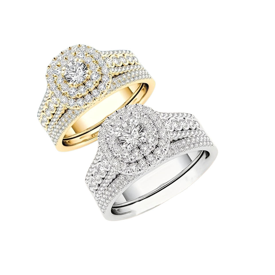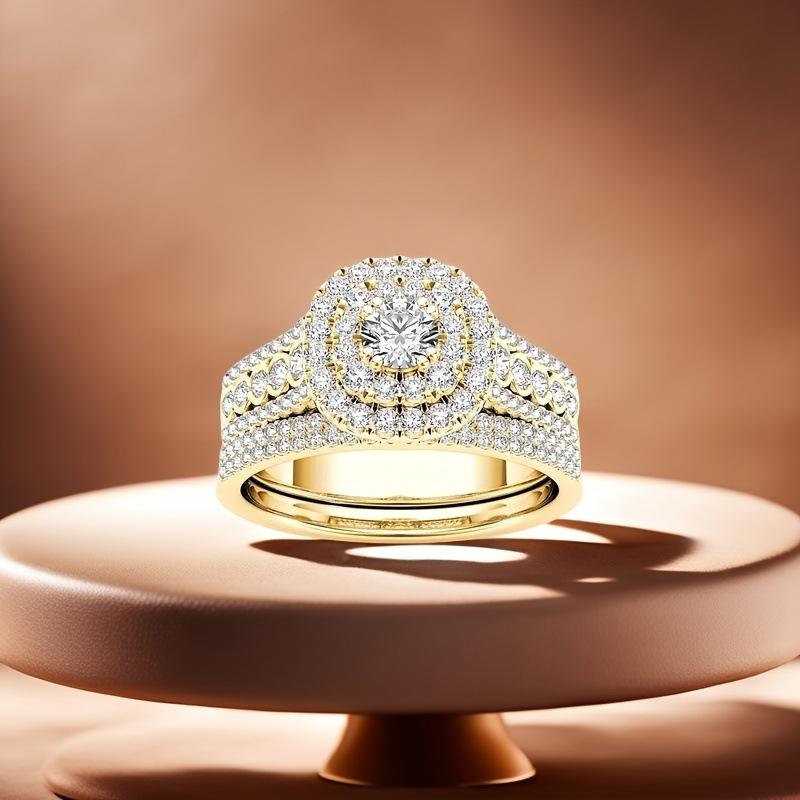 Saint Valentin 2026 Fashion Alloy Gold Plated Zircon Promise Wedding Couples Rings Set for Couple Lovers Him and Her