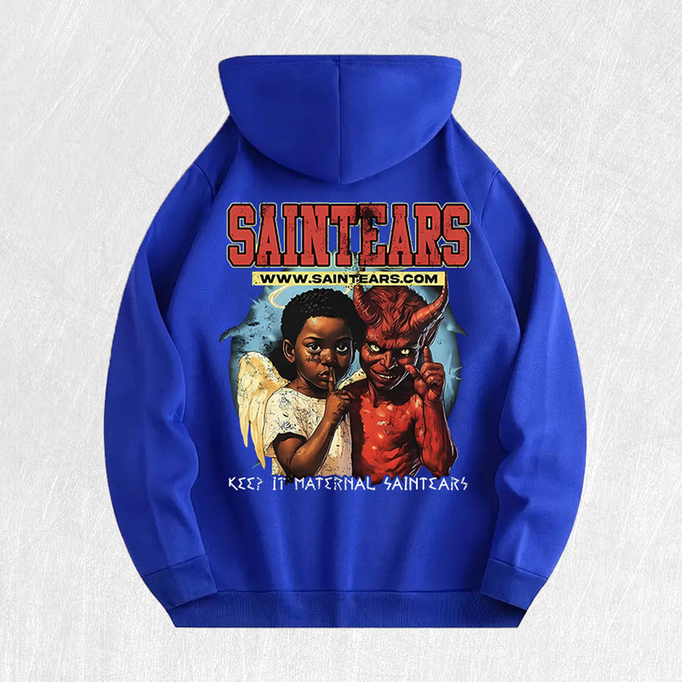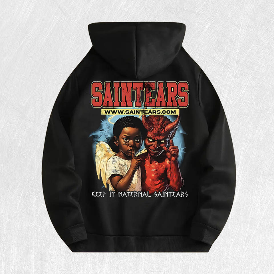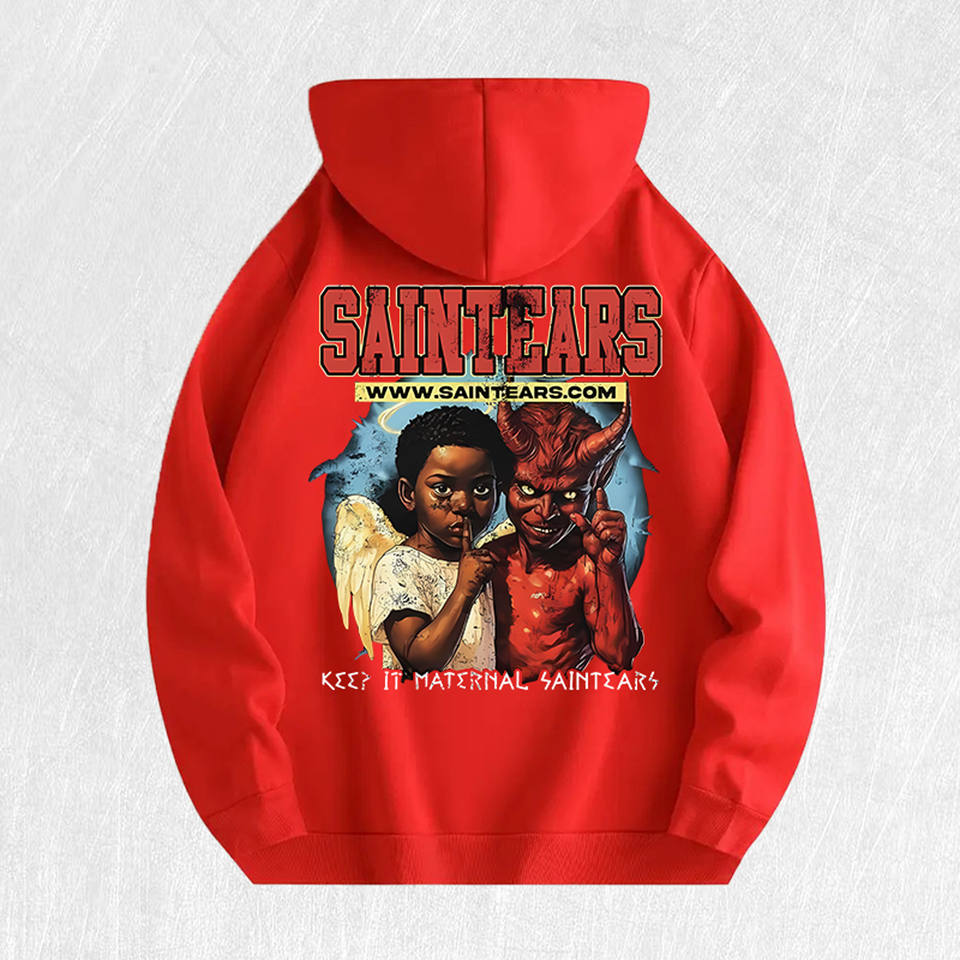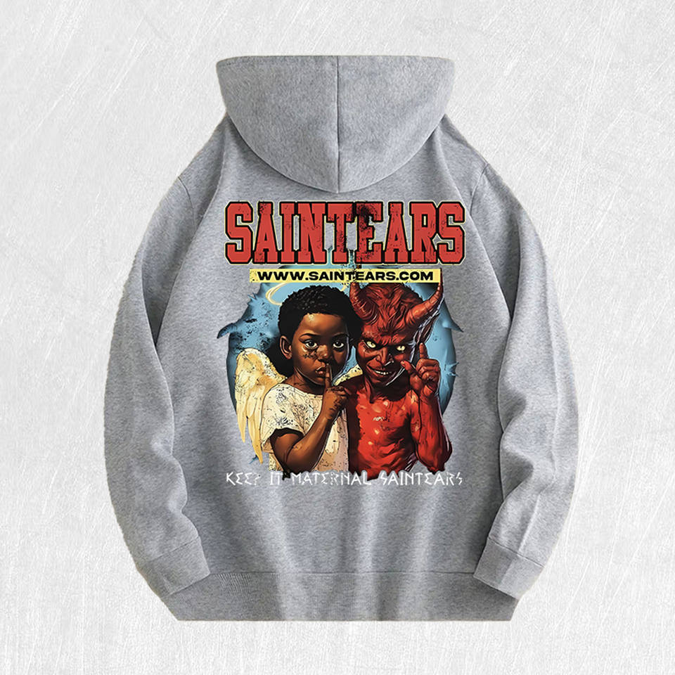 Felpa con Cappuccio Saintears con Grafica Angelo e Diavolo, 100% Cotone, Magazzino USA, 6 Colori