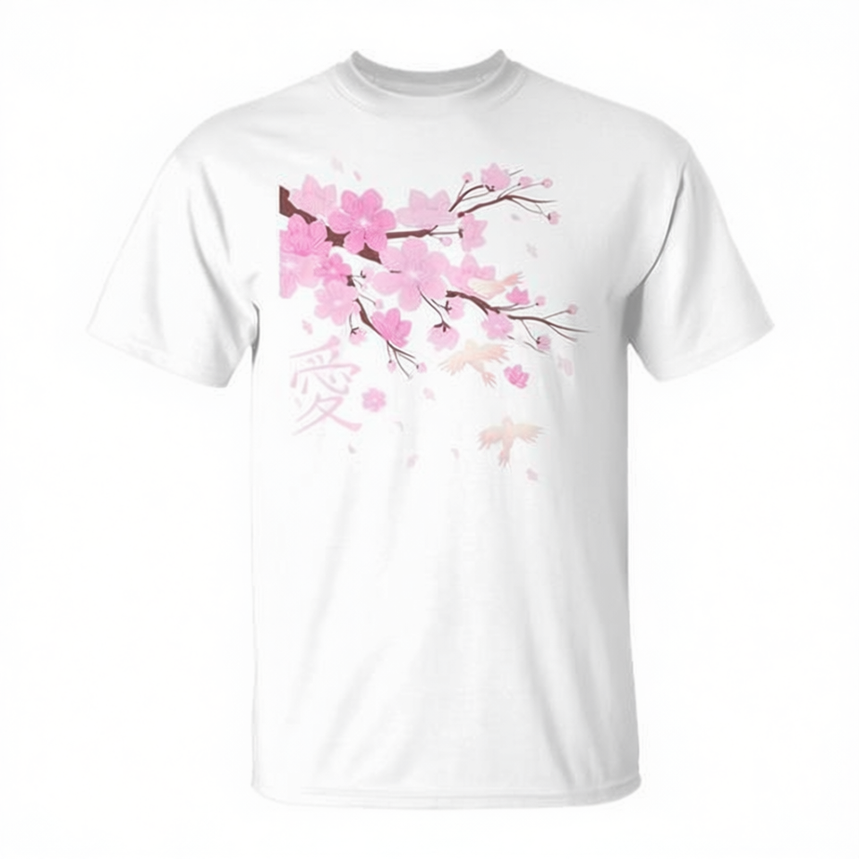 T-Shirt Unisex con Stampa Digitale di Fiori di Ciliegio, Manica Corta, Regalo Promozionale per Coppie e Fan CN