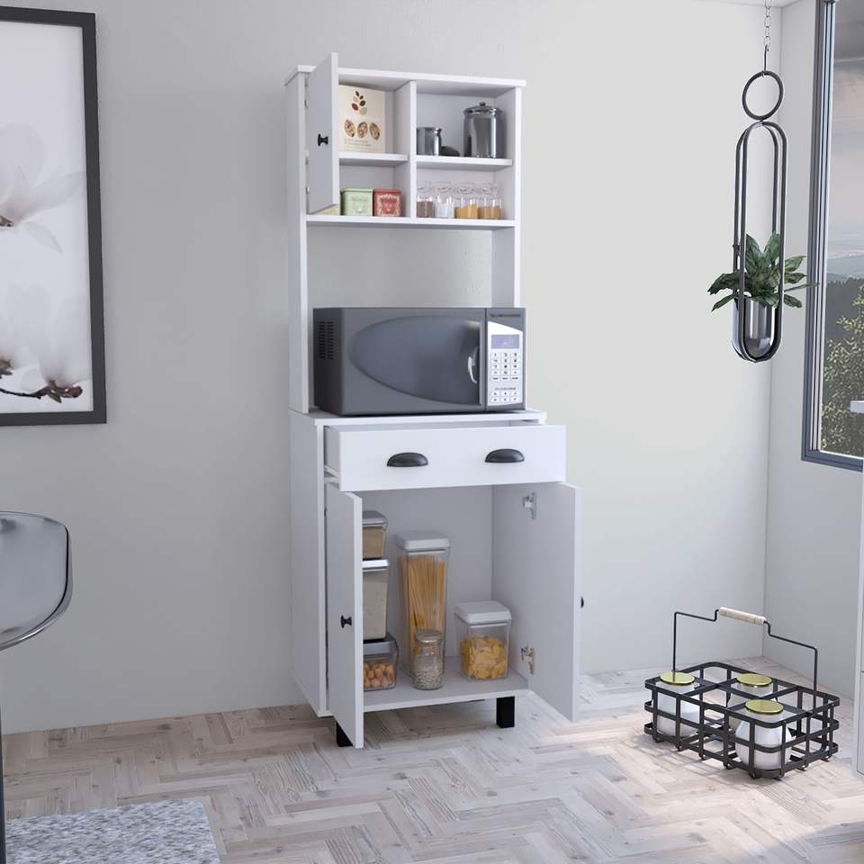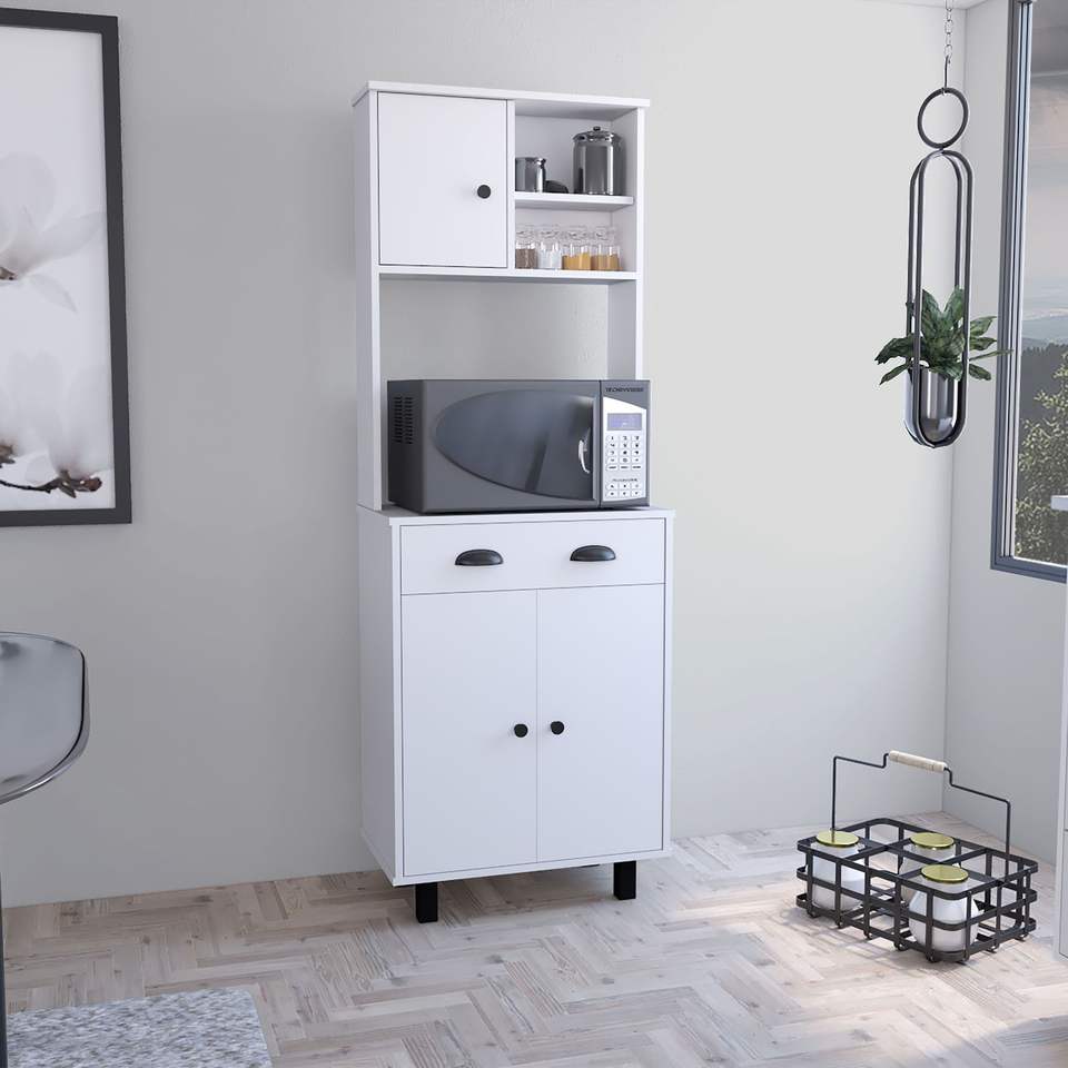 Dispensa da cucina Salem con 2 ante, 2 ripiani aperti e cassetto, con soluzione di archiviazione unica