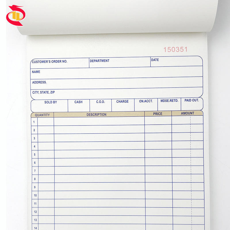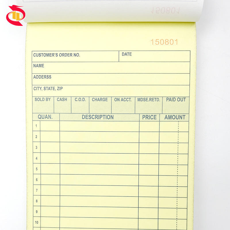 Blocco di fatture e ricevute personalizzate per ordini di vendita e cassa, con 50 fogli autocopianti per uso ufficio