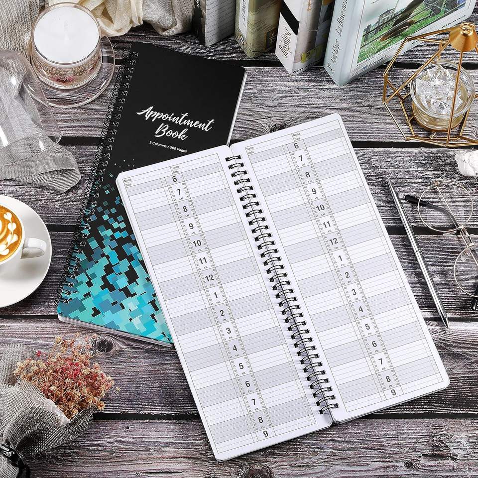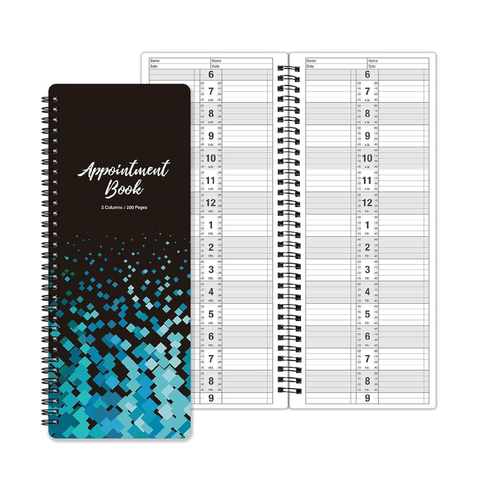 Salon Appointment Book - 11.5" X 4.7", 2 Columns, Undated, 6 AM - 9 PM, Twin-Wire Binding, 200 Pages, Hair Stylist - Black