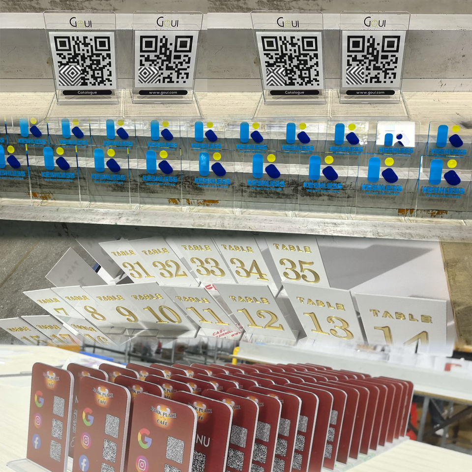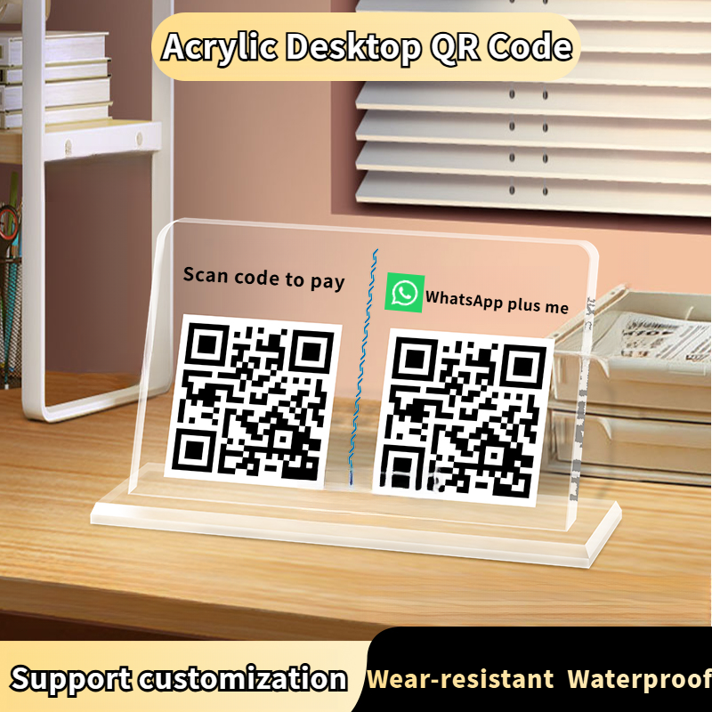 Espositore da Tavolo in Acrilico per Salone e Bar con Codice QR Scan to Pay e Social Media, Insegna Personalizzata Prodotta in Fabbrica in Piccoli Lotti