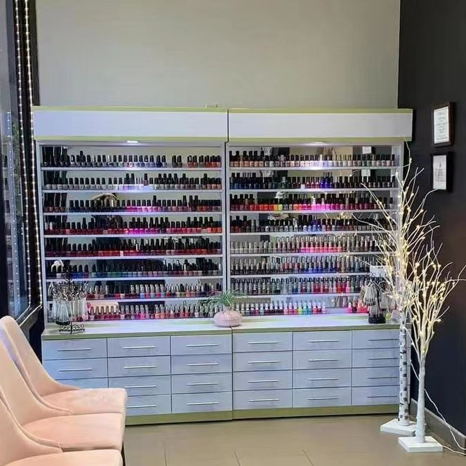 Piano del salone con luci a led tabella dei colori del libro per scaffali del negozio al dettaglio espositore per scaffali cosmetici scaffali per smalto per unghie