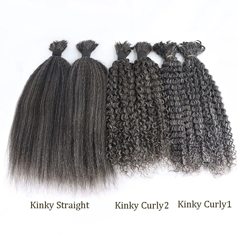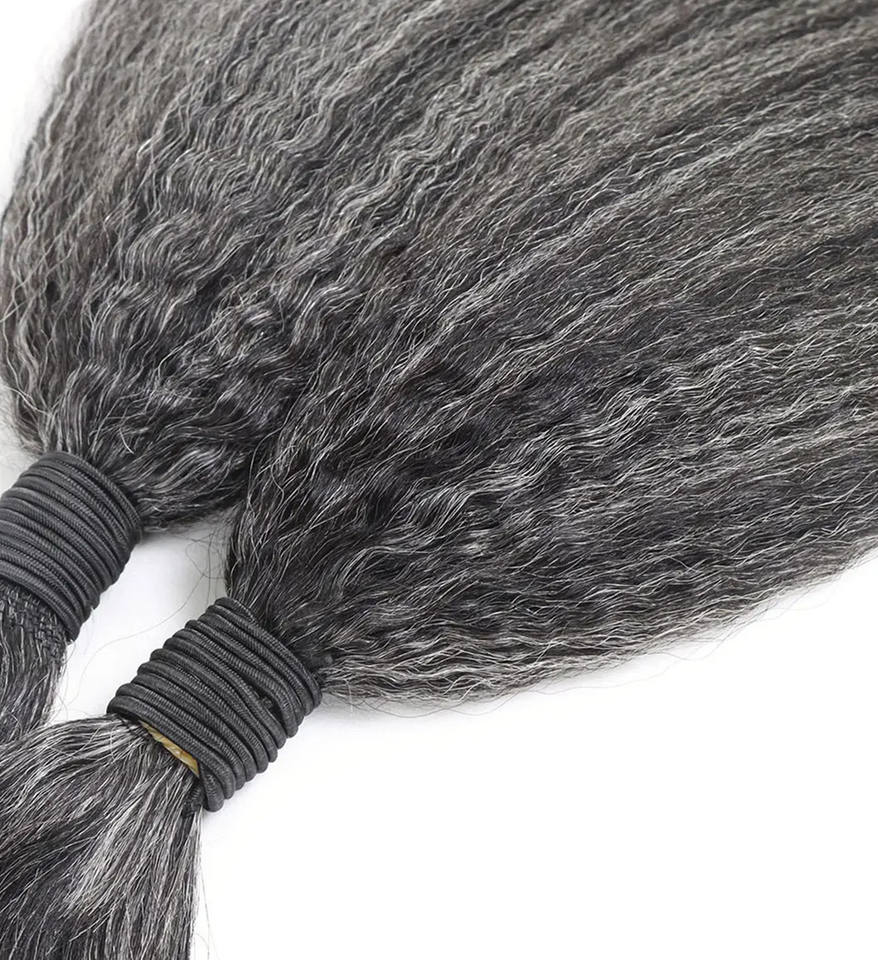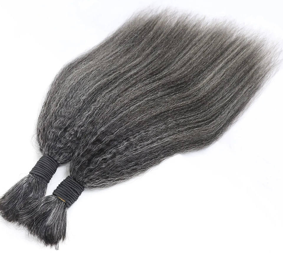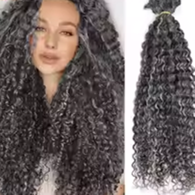 Capelli Umani Ricci Crespi Grigi e Bianchi per Intrecciare, Extension di Capelli Vergini Ondulati per Donne
