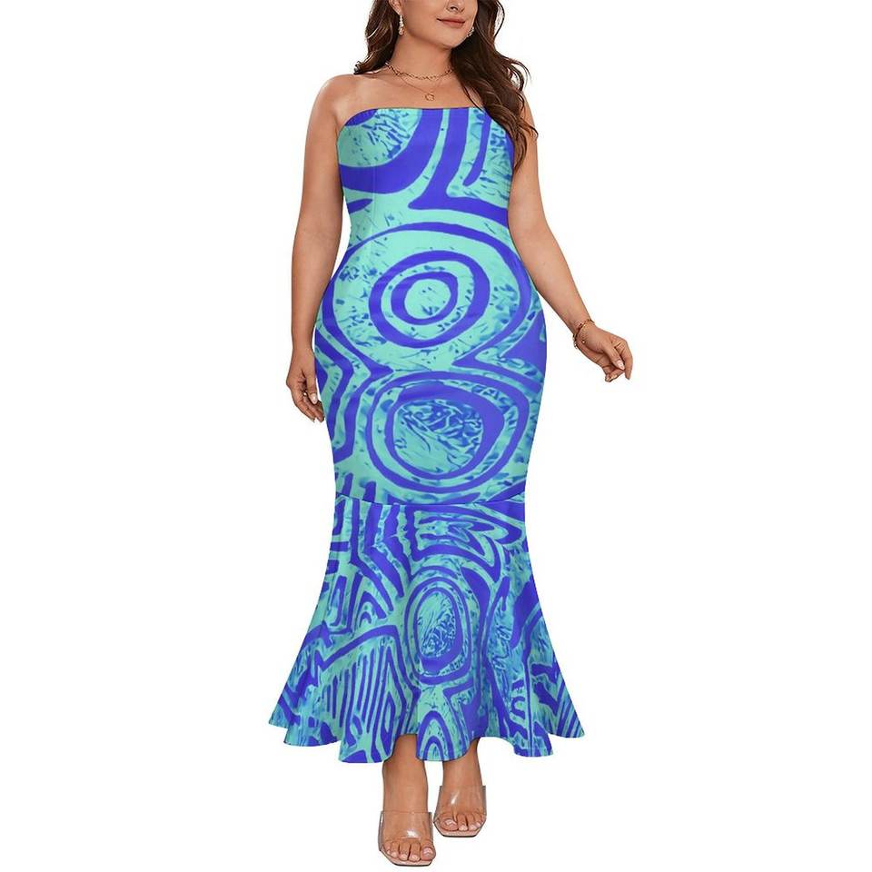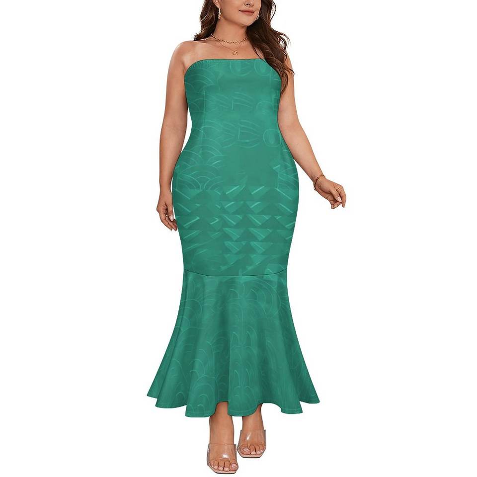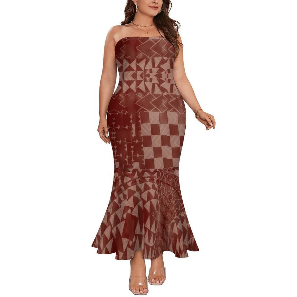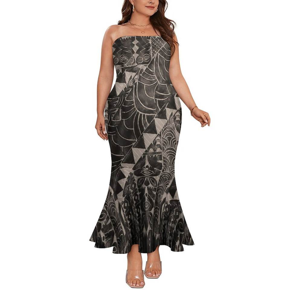 Samoan Mermaid Dress Polynesian Tribal Clothing Tapa Masi Cloth Flower Print Women's Strapless Fishtail Dress