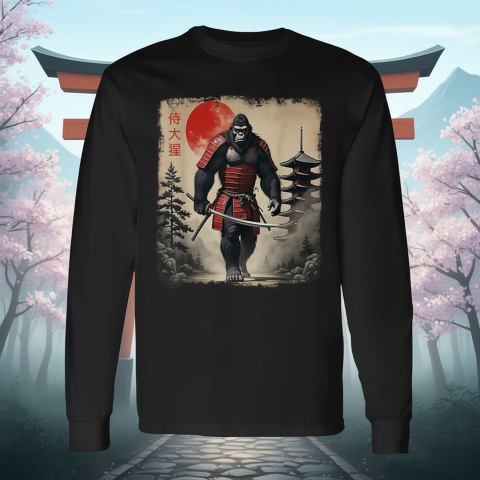 Maglietta a maniche lunghe Samurai Gorilla Warrior Japan Art