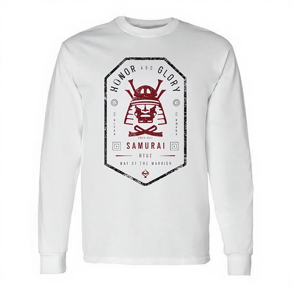 Maglietta a maniche lunghe Samurai con design Onore e Gloria, Stile del Guerriero