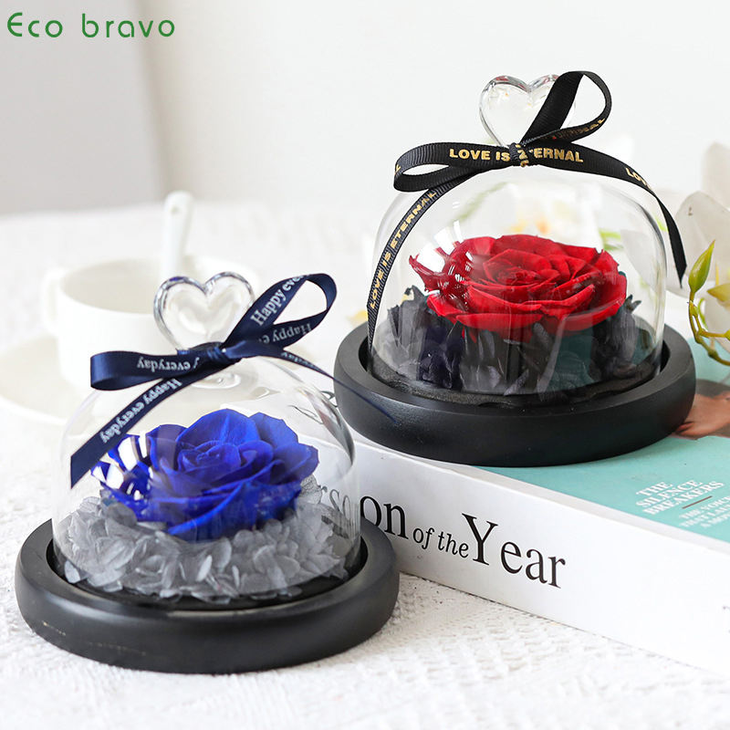 San San San valentino vendita calda reale naturale immortale secco eterno conservato rosa in cupola di vetro con scatola regalo eterna rosa fiore