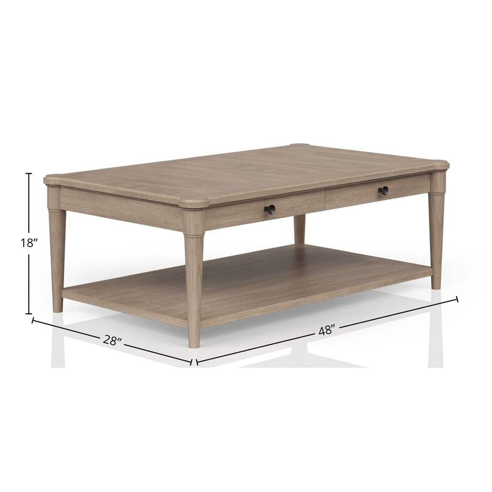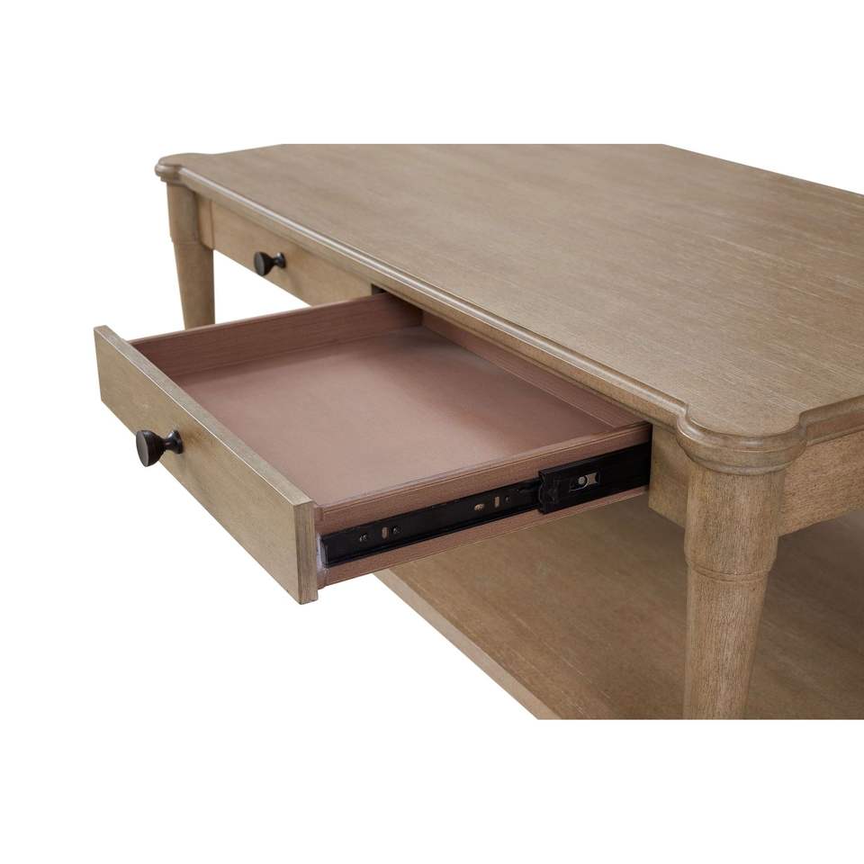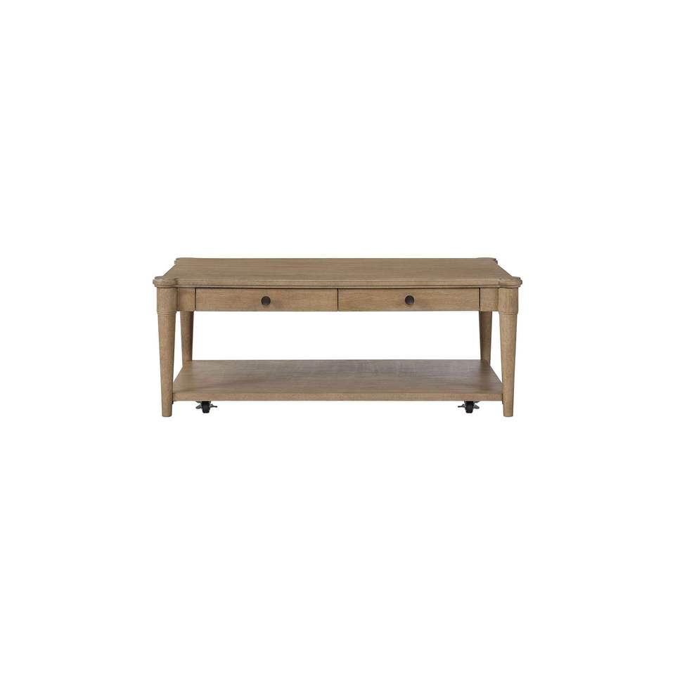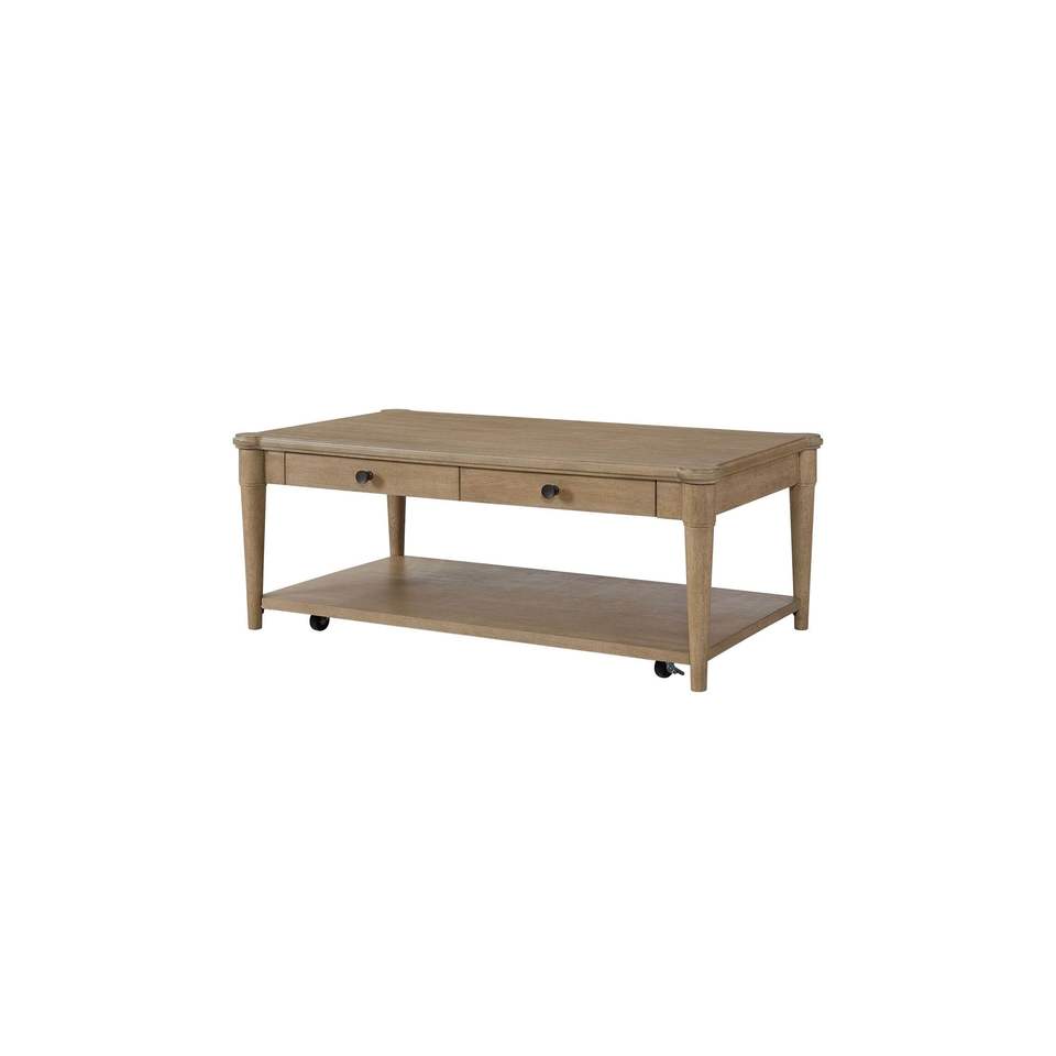 Tavolino da Cocktail Color Sabbia con Due Cassetti Portaoggetti e Ruote, Comodi Tavolini da Caffè