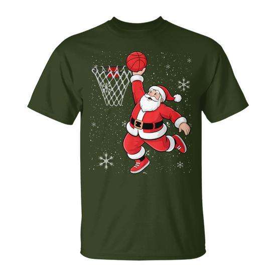 T-shirt con Babbo Natale che gioca a basket, design natalizio, abbigliamento da uomo