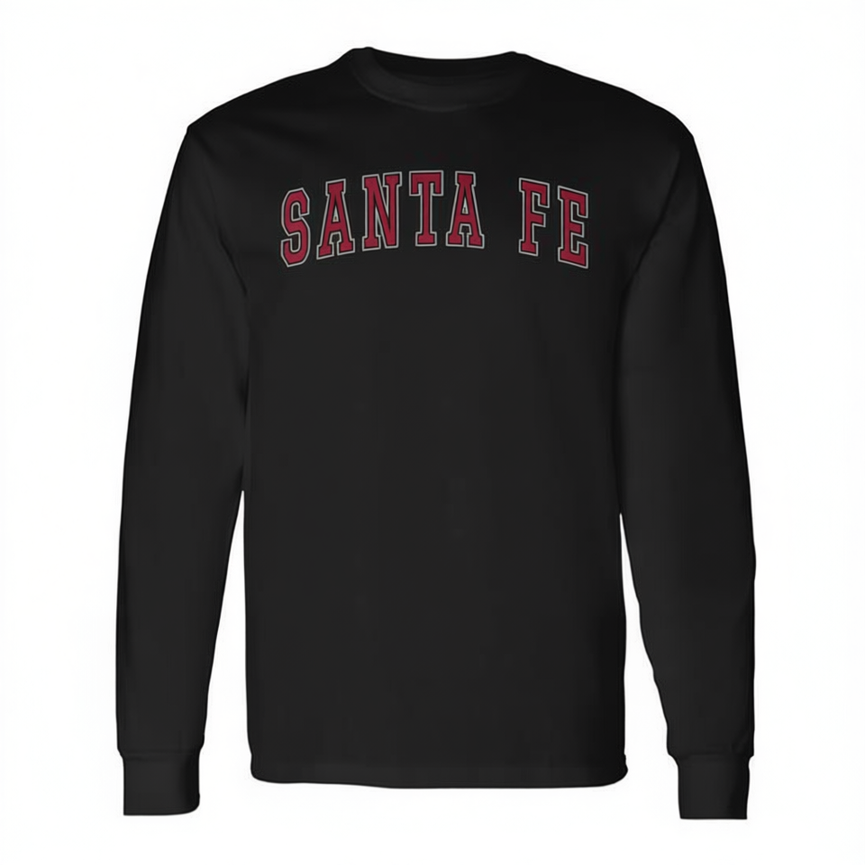 T-shirt a maniche lunghe Santa Fe con testo rosso, stile college, camicia sportiva