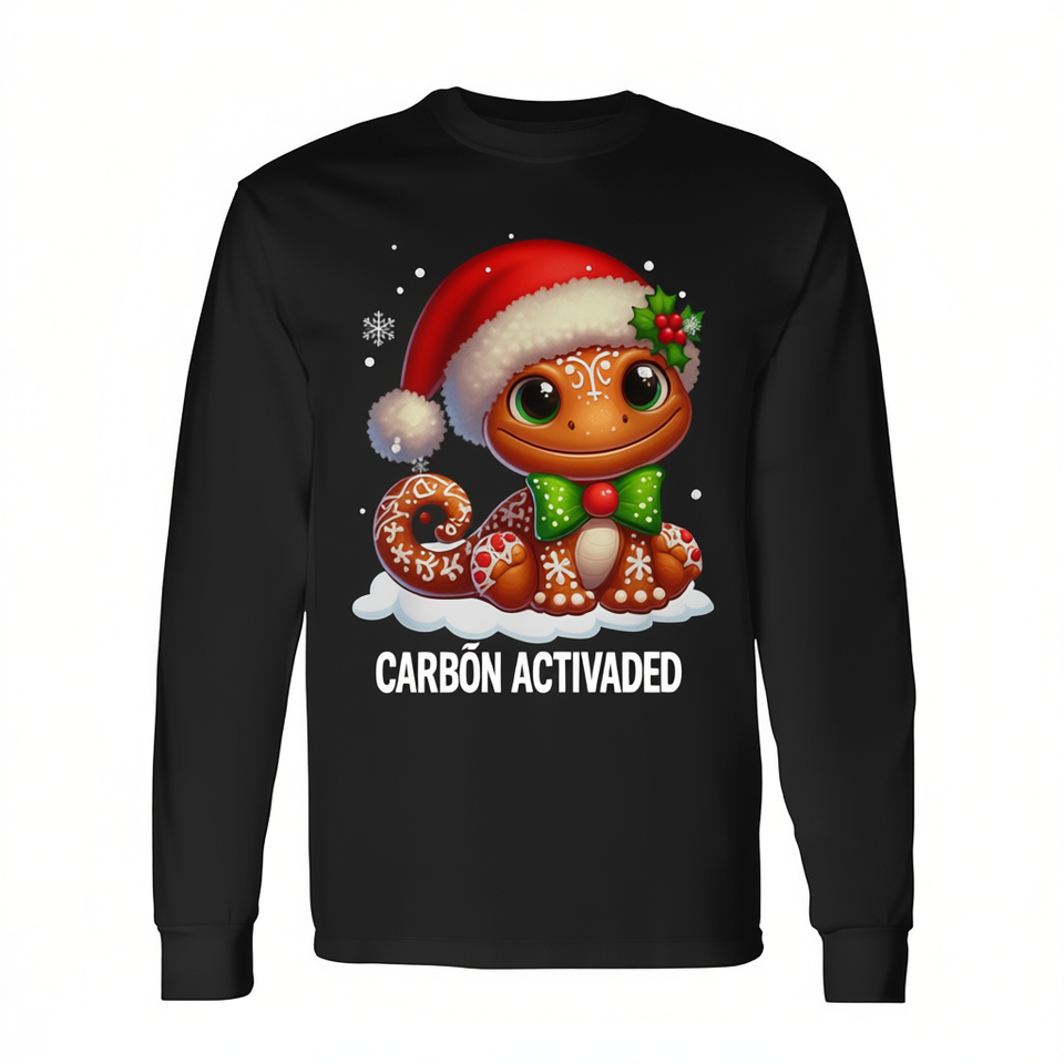 Maglietta a maniche lunghe natalizia Santa Gingerbread Gecko con design a tema biscotti e pasticceria
