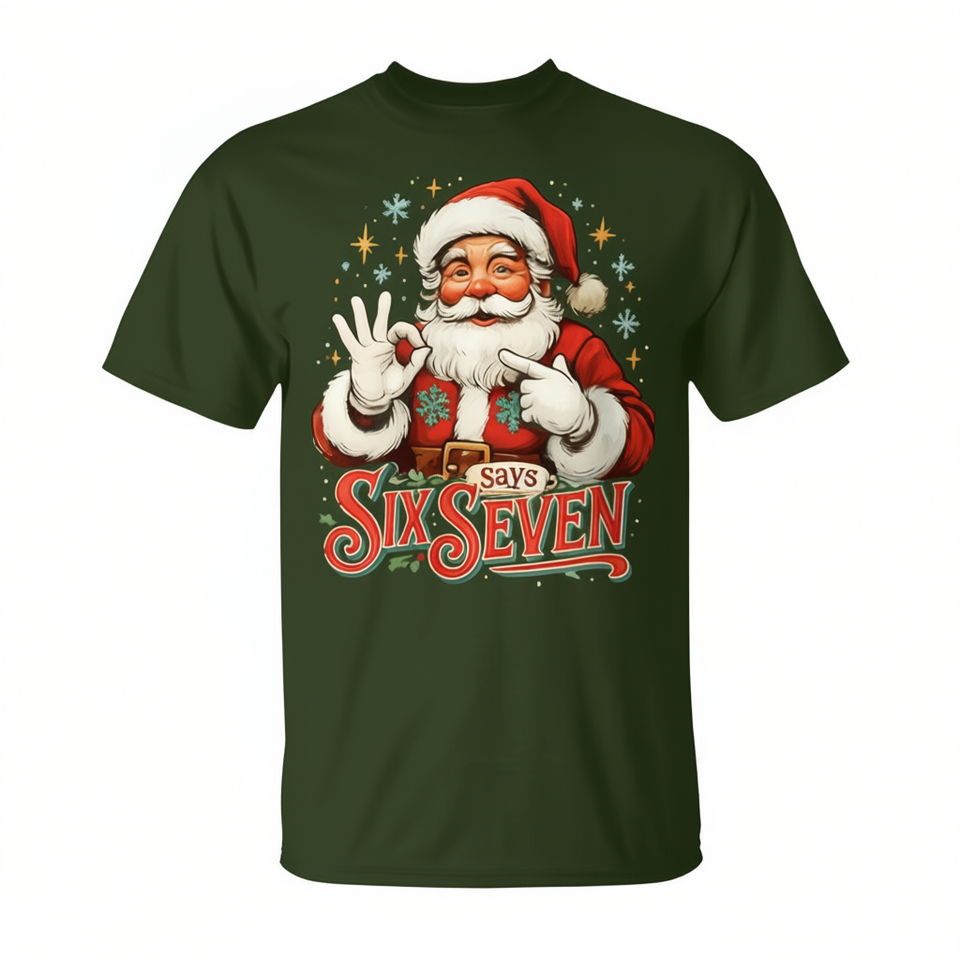 Maglietta natalizia da uomo con scritta Santa Says Six Seven, regalo per le vacanze, design divertente per il 67° compleanno