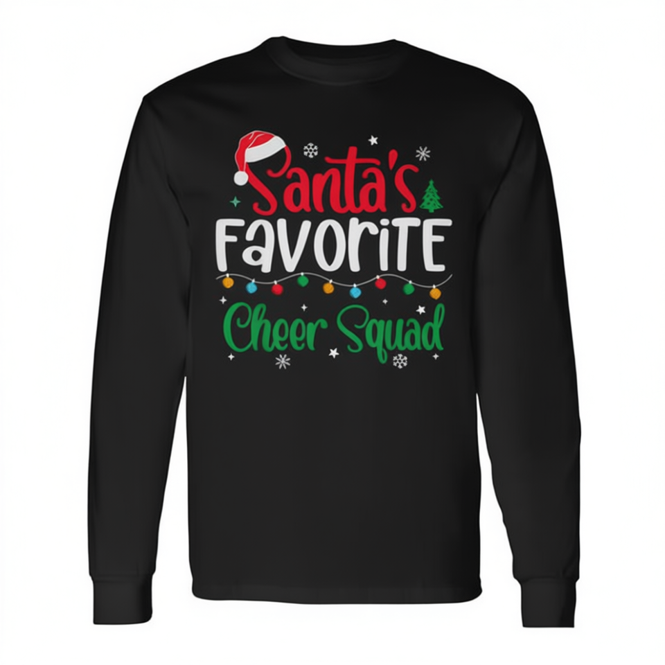 Maglietta a maniche lunghe natalizia della squadra di cheerleader preferita di Babbo Natale, regalo per le vacanze