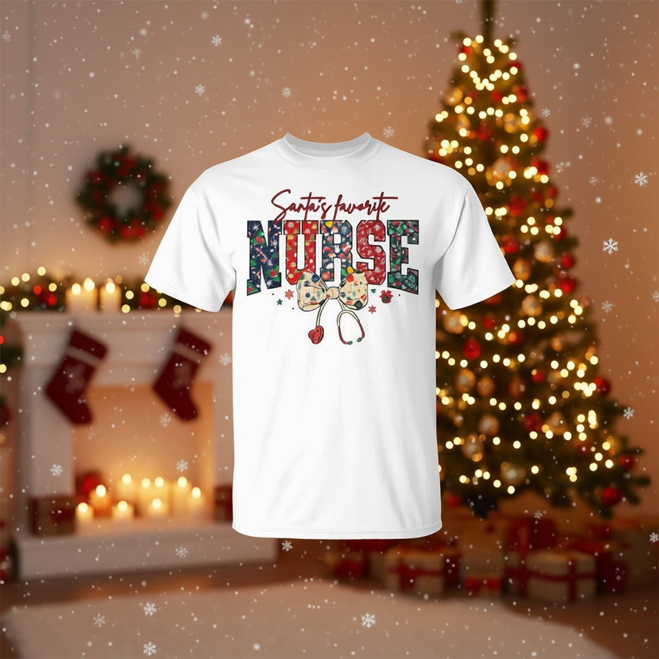 Maglietta natalizia con design a tema infermiera preferita di Babbo Natale per le infermiere