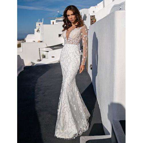 Abito da ballo auto-matrimonio Op15138 abito da sposa 1000 pezzi superiori al dettaglio in pizzo lungo pezzo a sbuffo in cella