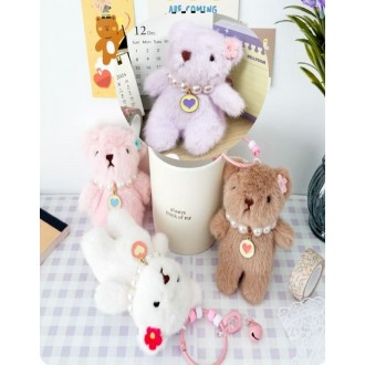 Sarawang Moru Bear Doll Keyring Pearl Necklace Bag Charm Car Key Holder and Gift Accessory