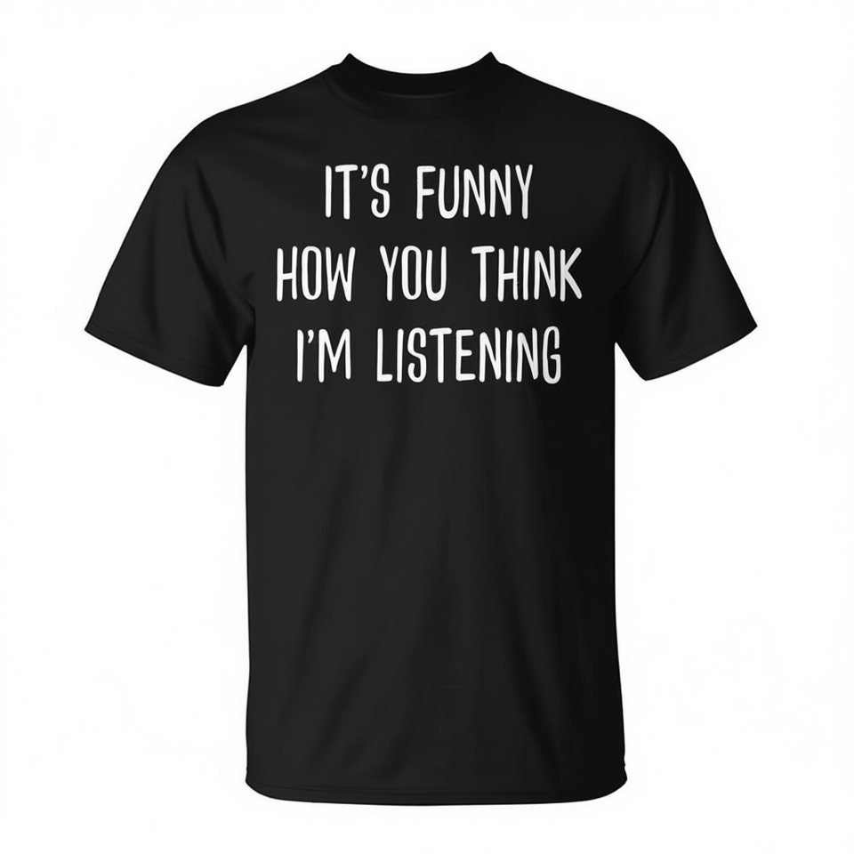 T-shirt sardonica 'Ignorant' con stampa 'È divertente come pensi che io stia ascoltando', nera, da uomo, promozionale