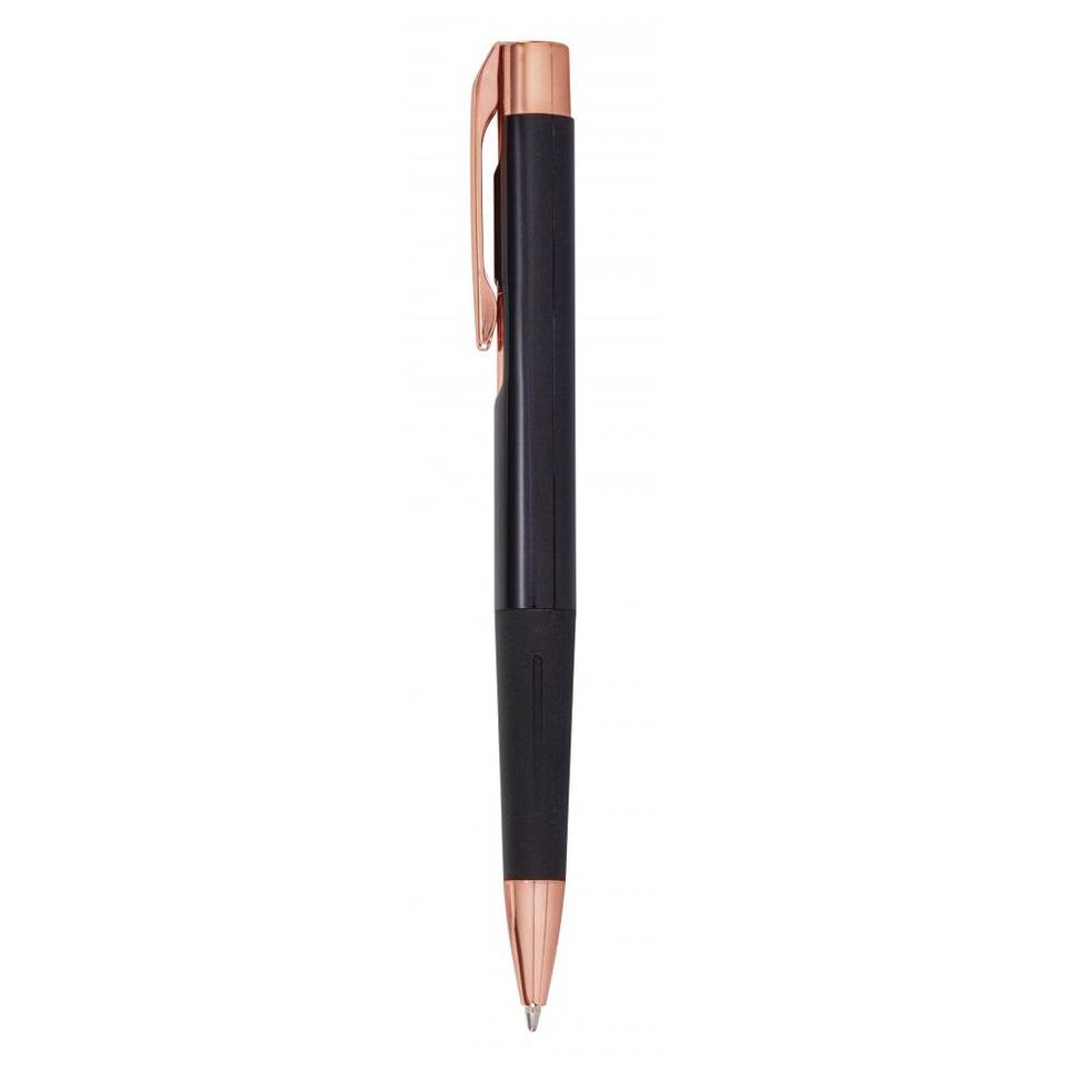 Penna a sfera satinata nera oro rosa lucido in metallo novità corpo piuma 1.0mm larghezza di scrittura in oro rosa nero in raso