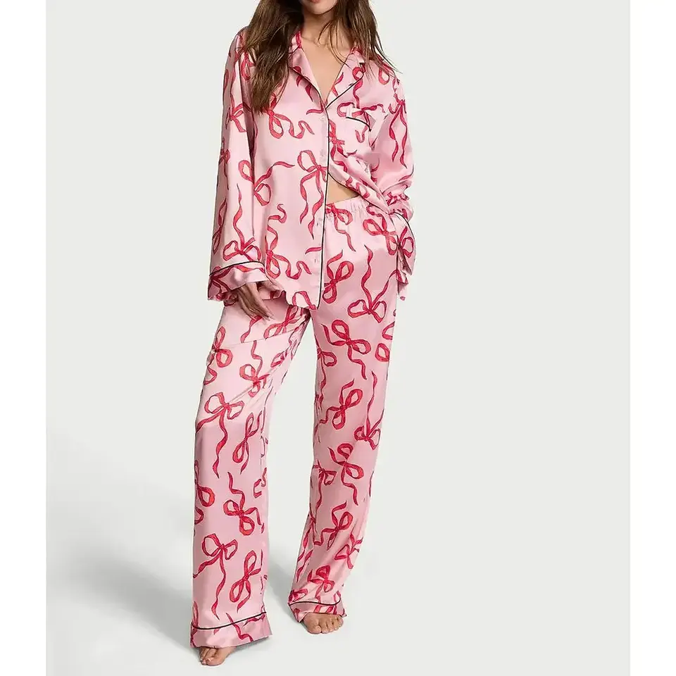 Pigiama da donna HEZIOWYUN con fiocco in raso - Miscela di poliestere riciclato e spandex