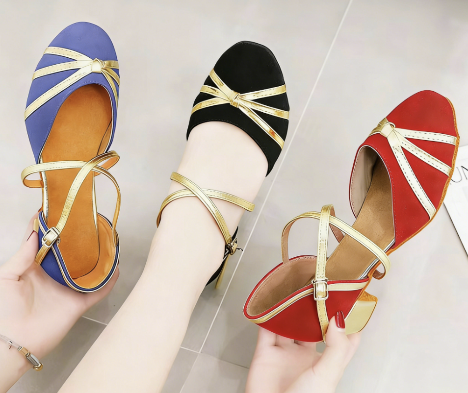 Satin Latin Dance Shoes 3.5cm Heel Diamond Clasp Salsa Modern Dance Shoes Rumba Ballroom Performance Dance Heels for Women