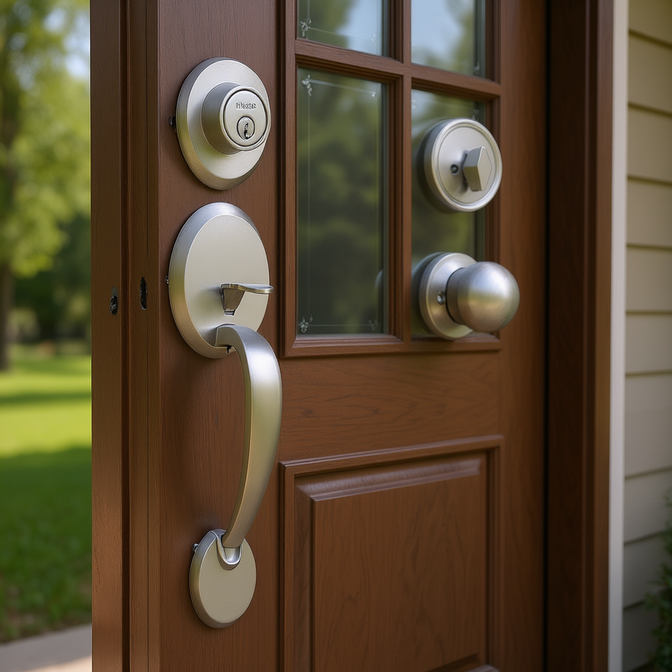 Front Door Handle Deadbolt Set Single Cylinder Polished Nickel Anti Theft Entrance Lock Right Left Handed