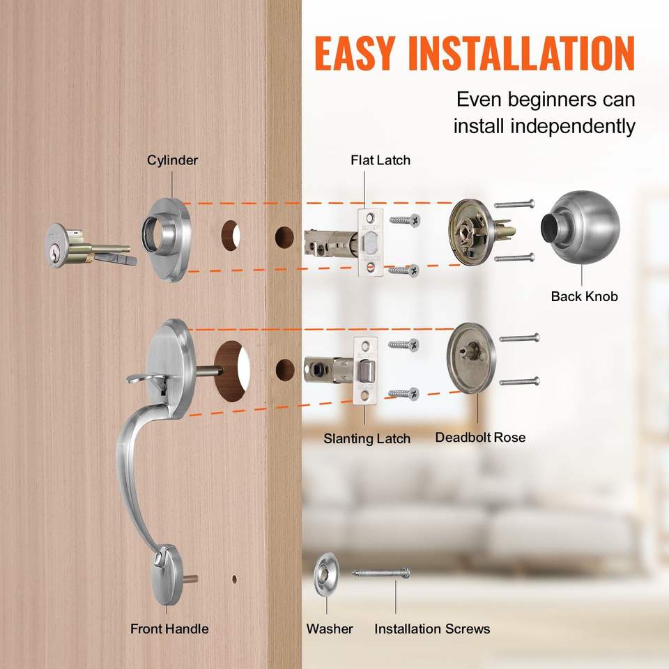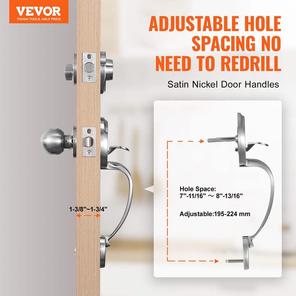 Satin Nickel Front Door Handle Deadbolt Set Single Cylinder Interior Knob Adjustable Hole Spacing Right Left Handed Entrance