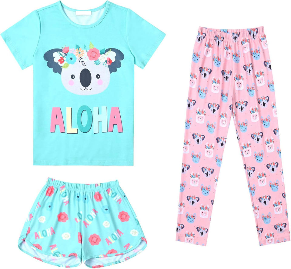 Pigiama in raso Set pigiama stampato carino da ragazza personalizzabile con cartoni animati Set vendita diretta in fabbrica pigiama 3 pezzi per bambini a basso prezzo