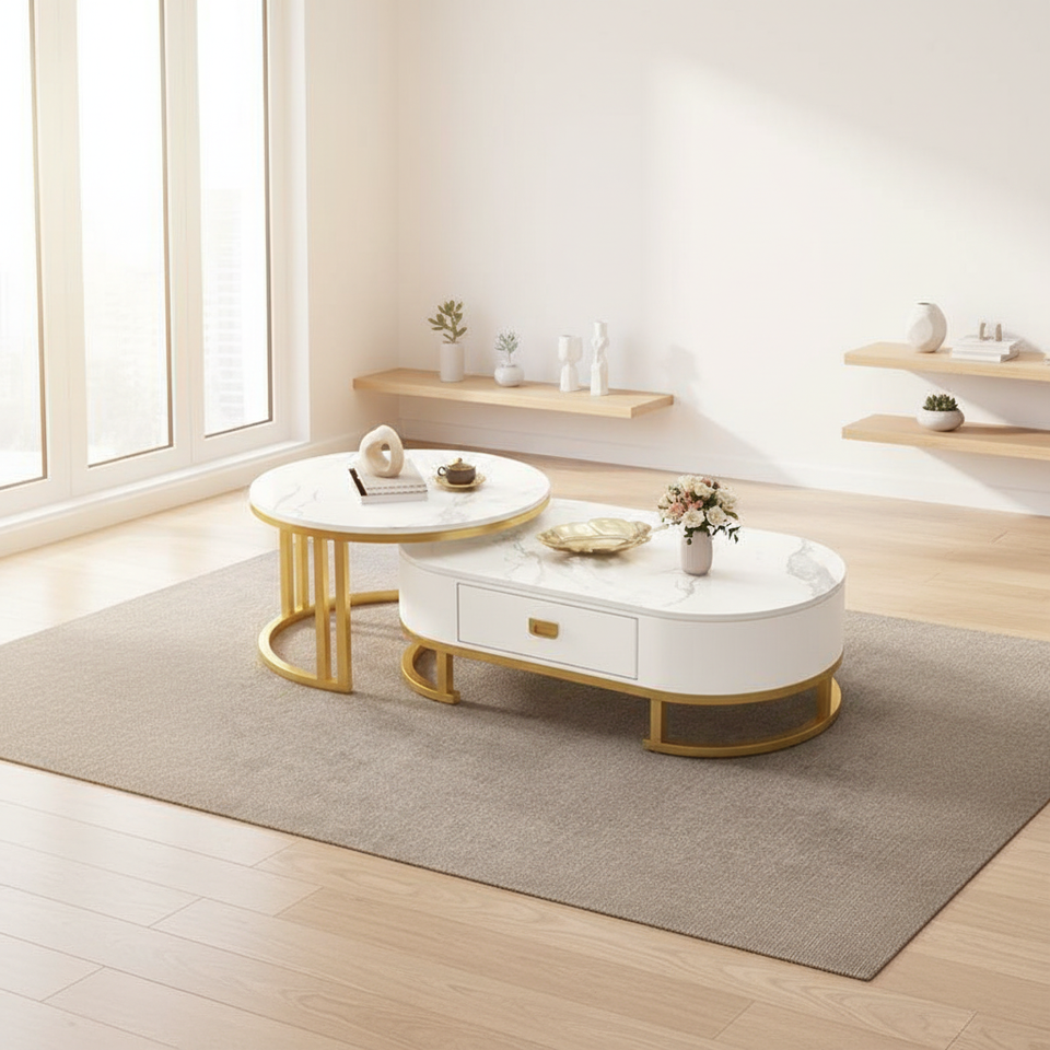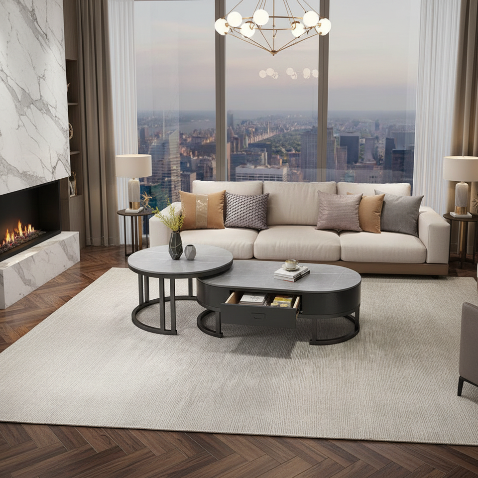 Satisfaction Guaranteed Contemporary Luxury Stone Slab Oval Shaped Coffee Table with Storage High-End Furniture
