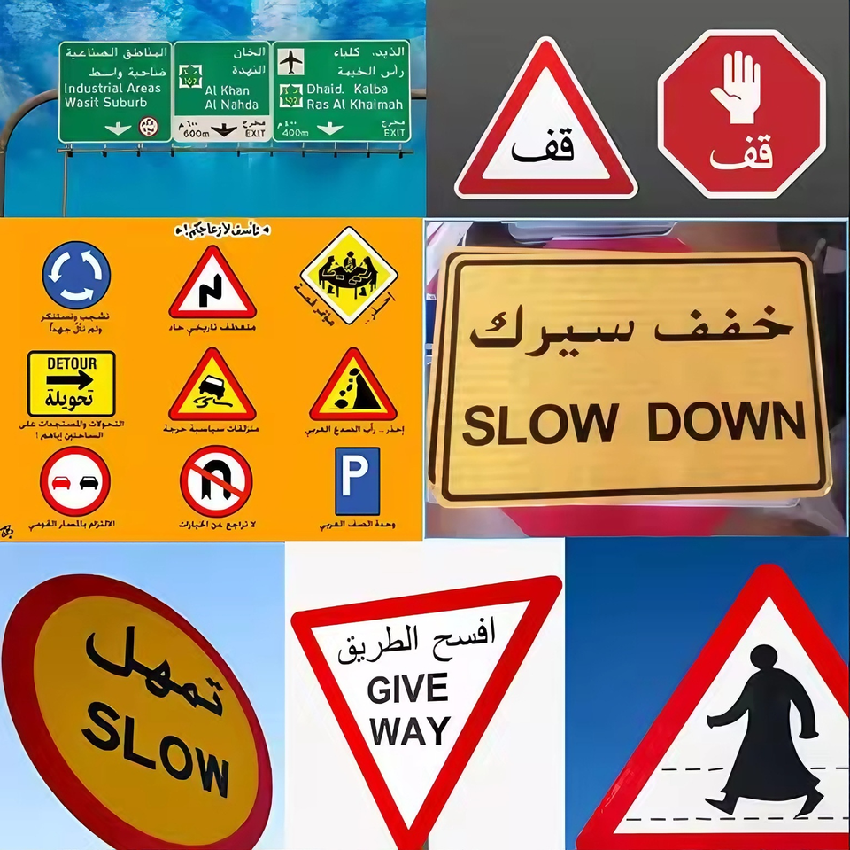 Kit di Segnaletica Stradale Standard dell'Arabia Saudita - Segnali Stradali Riflettenti in Alluminio Bilingue Arabo-Inglese per Strade e Autostrade GCC