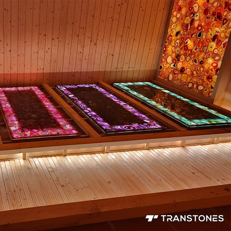 Pannello con parete in pietra di agata retroilluminata per Sauna foglio di agata rossa naturale traslucido per pavimenti piastrelle di lusso per la casa all'ingrosso