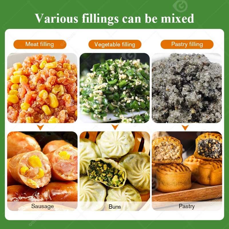 Applicable raw materials:For making meat, vegetables and dessert stuffing