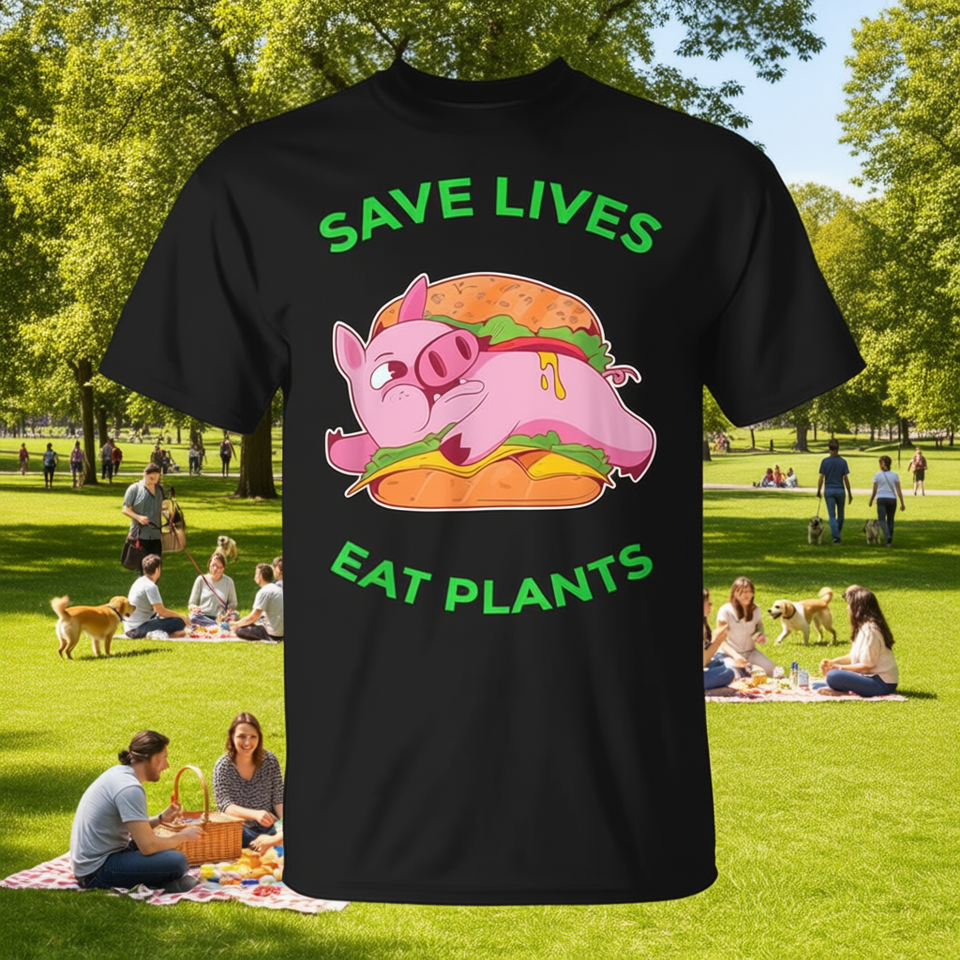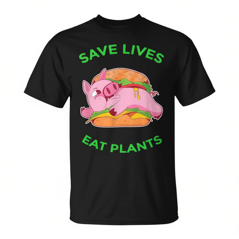 Save Lives Eat Plants T-shirt vegana nera per adulti unisex