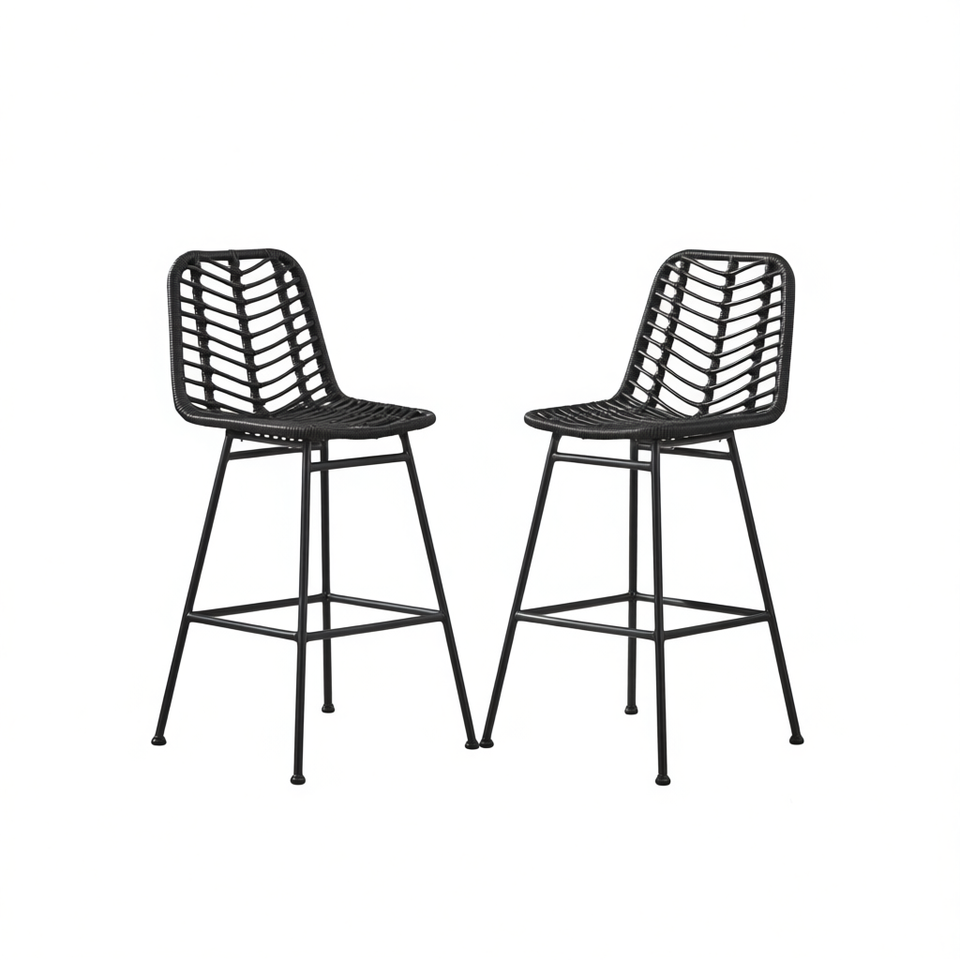 Set di 2 sgabelli da bar Sawtelle in vimini per esterni, base in metallo resistente alle intemperie, design contemporaneo