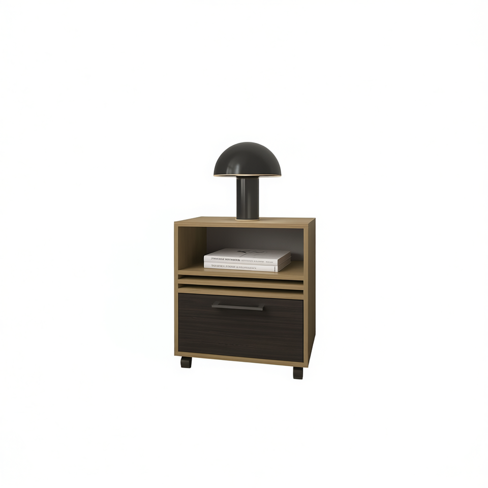 Comodino Saxon in Rovere Naturale con Cassetto e Vano Aperto, Arredamento Moderno per Camera da Letto