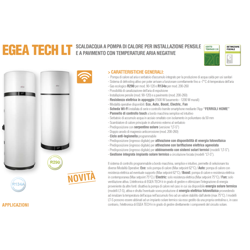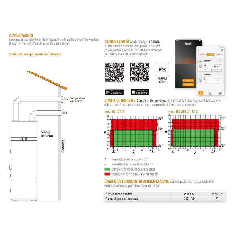 Scaldacqua Ferroli LT-S Egea Tech Inverter a Pompa di Calore 260 Lt WiFi con Compressore Solare e Classificazione A+