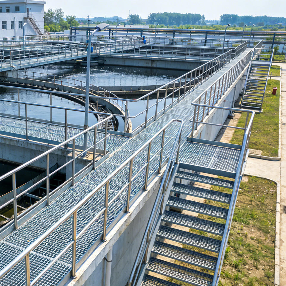 Piastre Antiscivolo a Denti per Scale in Impianti di Trattamento delle Acque Reflue
