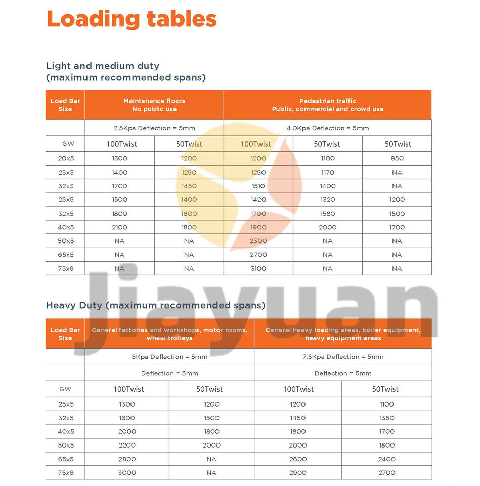 Passo delle barre portanti:20/30/40/50/60/80/100 mm