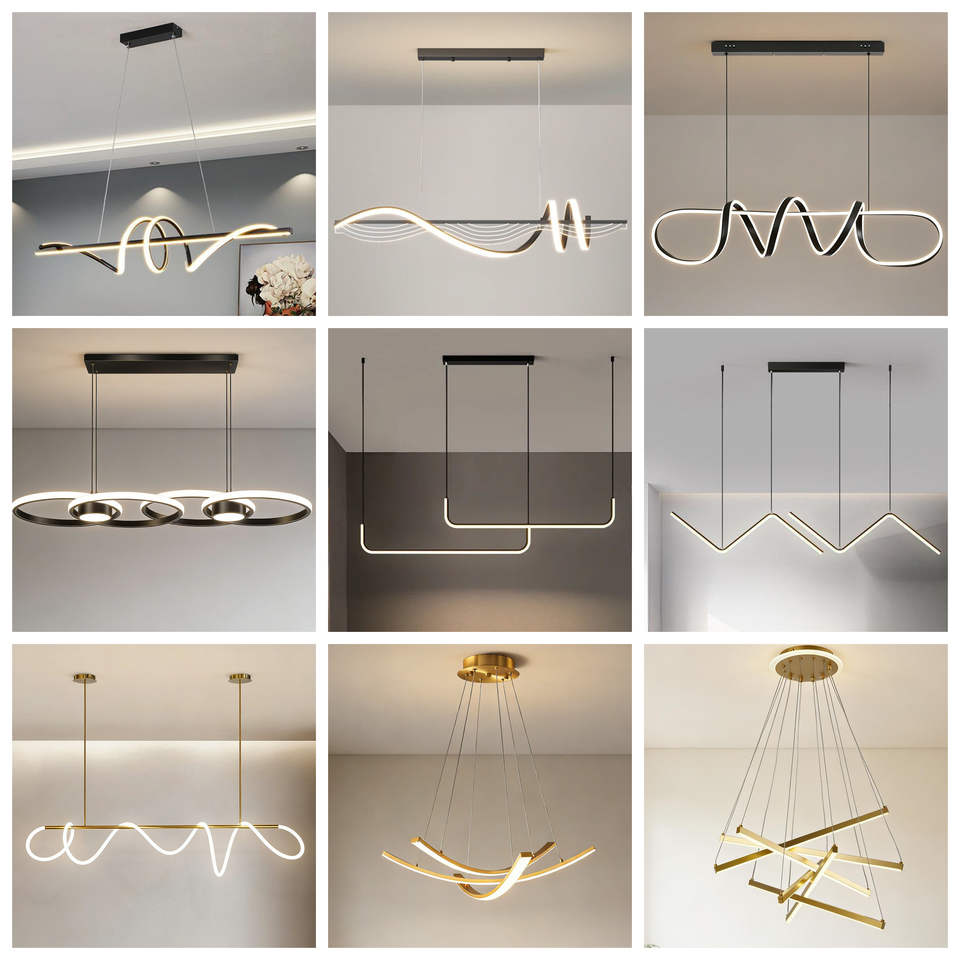 Lampadario a Sospensione Moderno a Cerchio Stile Scandinavo Creativo Minimalista a Linee per Soggiorno Camera da Letto Ristorante e Bar