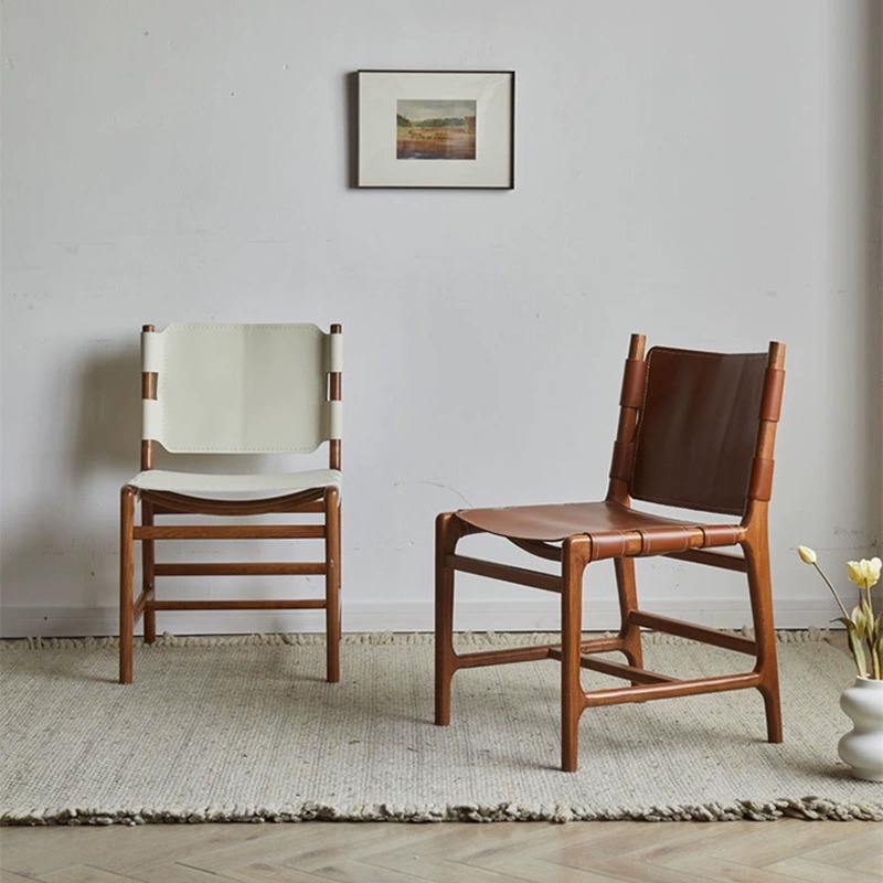 Scandinavian Japanese Style Solid Wood Dining Chairs Restaurant Coffee Shop Cafe Leather Seats for Hotel School Application